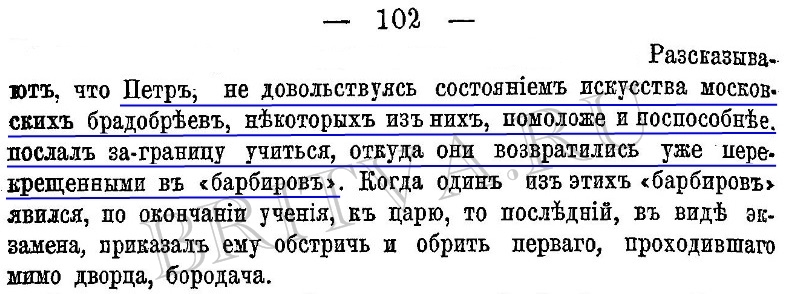Большое спасибо всем, кто выразил свой интерес к статье лайком/лайками! anton, тебе отдельное спасибо за интересную книгу, она является прекрасным первоисточником! Я нашел в ней, как новые вещи, так и вещи, которые объясняют существования уже известной информации. Например, Владимир Михневич ответил на вопросы: - Сколько бритв имелось у царя Михаила Федоровича в 1634 г. (годы правления - 1613-1645). - Сколько бритв купили в 1650 г. для следующего царя - Алексея Михайловича (годы правления - 1645-1676), Фото №57: Он написал о постепенности „гардеробной” реформы (оказывается, современники так ее называли), Фото №58: Теперь мне понятно откуда, вероятно, взялась распространенная информация о бритья боярина Шейна и о массовом бритьем во время пира у него, Фото №59: И еще, теперь мне понятно откуда, вероятно, взялась распространенная информация о том, что Петр I посылал за границу российских брадобреев учиться „барбирскому” ремеслу, Фото №60: Автор упоминает о несохранившихся четырех указов Петра I,Фото №61: Он рассуждает о социально-культурных предпосылках реформы, Фото №62, Фото №63: В то же время написал и о возможных личных причинах, Фото №64: Об авторе книги „Исторические этюды русской жизни”, (глава „Исторiя русской бороды”), том 2, 1882 г. - Владимир Осипович Михневич, псевдоним - Коломенский Кандид (1841-1899) - русский писатель, журналист, историк быта, краевед и публицист. В 1879-1886 гг. опубликовал сборники „Исторические этюды русской жизни”, Фото №65: