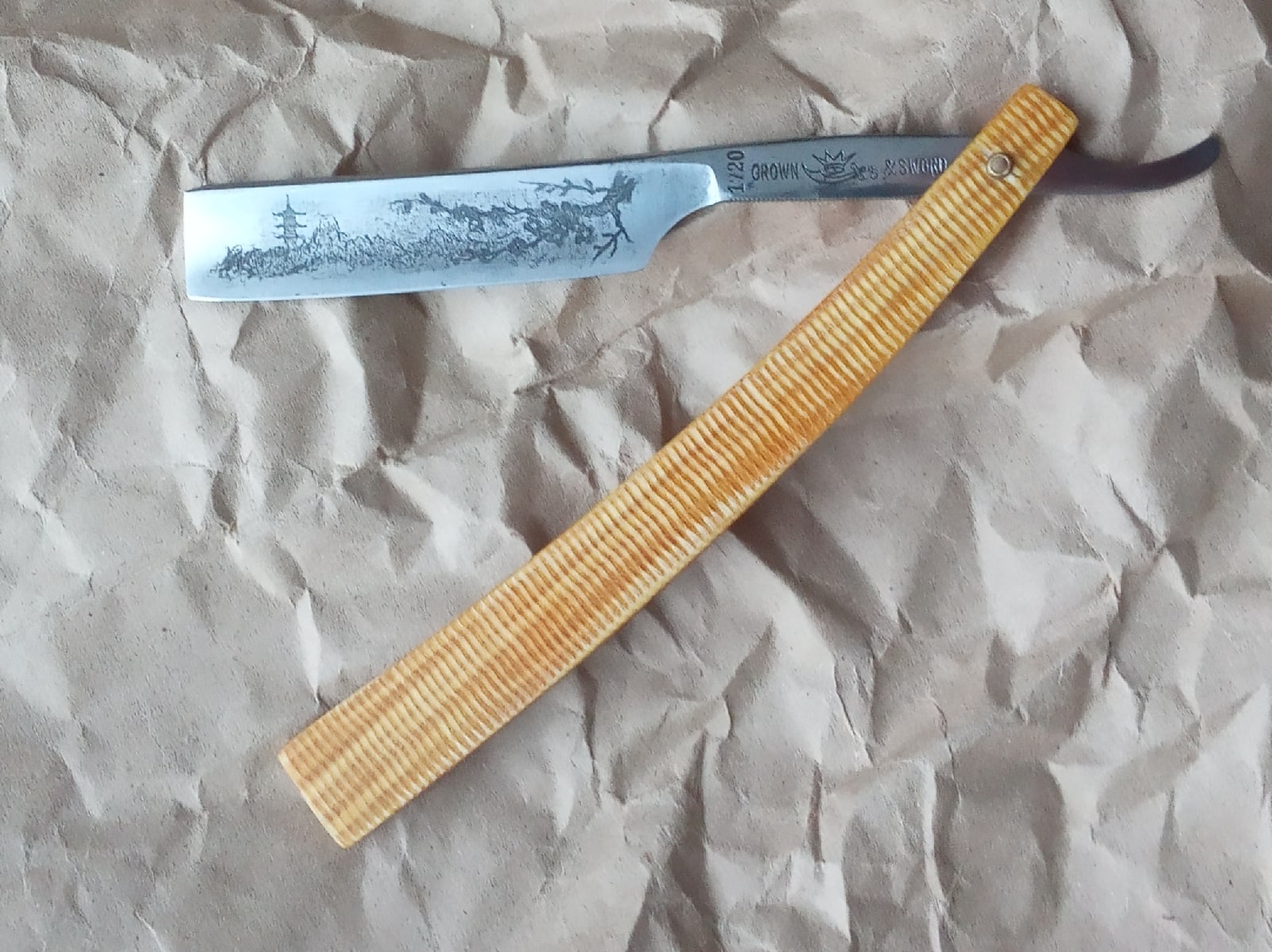Продаётся от Тараса.тарас, позволь добавить, что на полотне надпись: „TUNGSTEN” - он же вольфрам. Значит, сталь с добавлением вольфрама, что предполагает повышенной износостойкостью. С 2013 г. с кайфом бреюсь опасной бритвой пять раз в неделю, в три прохода.