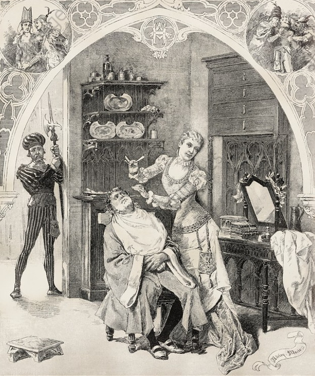 Опасная бритва в искусстве (картины, рисунки, фото, тату)William Lockhart Bogle (1857-1900). Уильям Локхарт Богл - британский художник и скульптор. Иллюстрация из газеты „The Illustrated London News”, 1887 г.