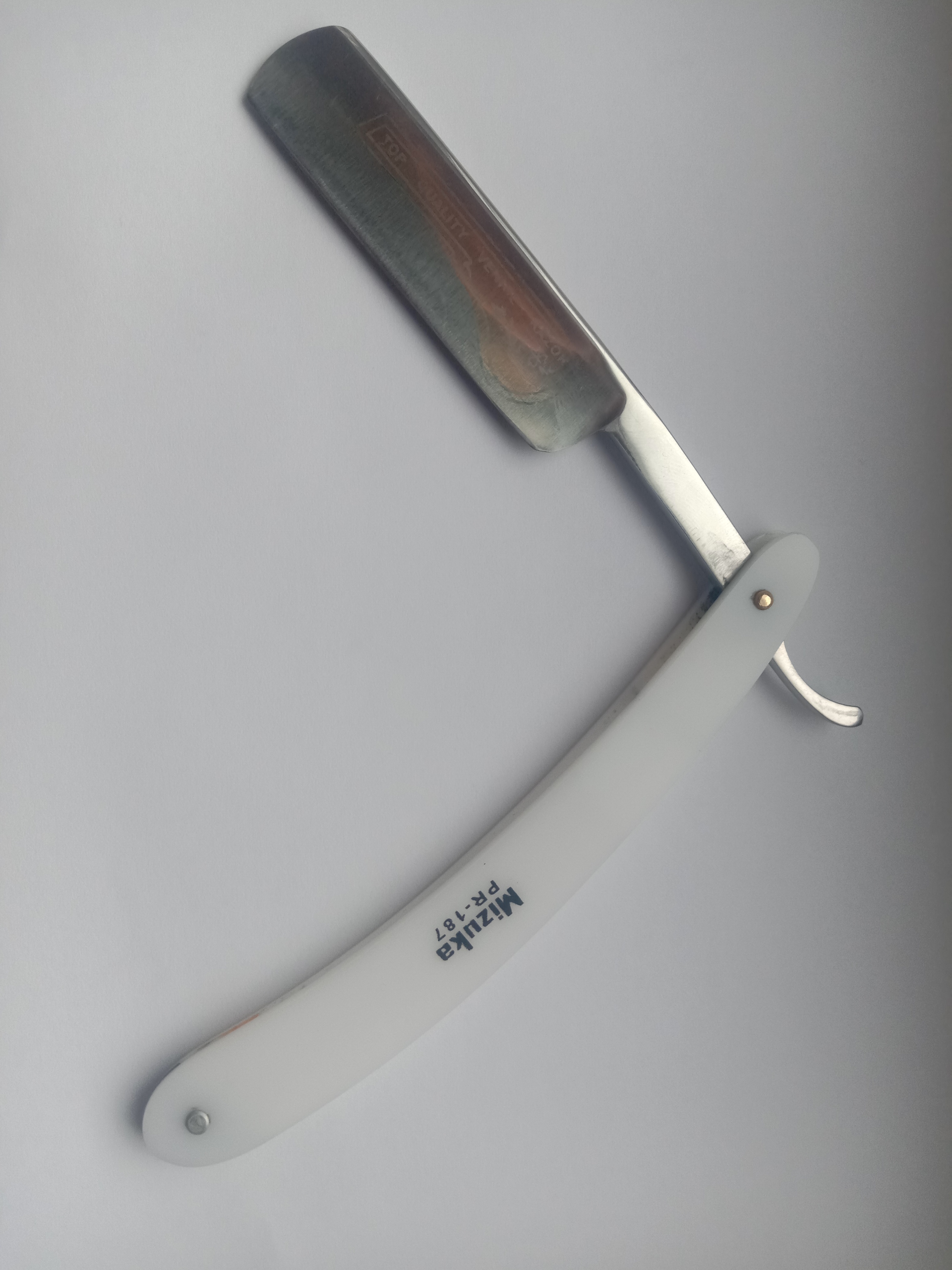 Погуглил малость,да, очень похож;) сегодня в очередной раз надумал побриться и проверить для начала тест на волос,а он к сожалению не особо то захотел проходить,пришлось на камушке чуть подправить и на ремне с пастой и без,потом лучше пошло. Кстати взял свою шаветку и провел тот же тест и она лучше его прошла хоть я ей уже пару раз брился. При бритьё заметил что идёт опасная бритва мягче шаветки и это особенно чувствуется в районе подборотака(я там частенько резался). В районе подборотака сегодня значительно лучше получилось пробрить и я даже решил сделать третий проход ради интереса и под конец совсем расслабившись умудрился пару раз порезаться;)) И да,в районе шее раздражение выпало, наверное из-за того что пяткой бритвы в этих местах задевал. А так бритьё мне понравилось,что-то в этом есть такого,эдакого;) А товарищи тут мне сказали что вот знаешь, сейчас есть станки безопасные с 5 лезвиями,технологии не стоят на месте,а ты мучаешь себя,ещё и горло так перерезать можно;)