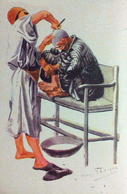 „Barbier algеrien” „Алжирский цирюльник, 1910 г. Взглянем поближе: С 2013 г. с кайфом бреюсь опасной бритвой пять раз в неделю, в три прохода.