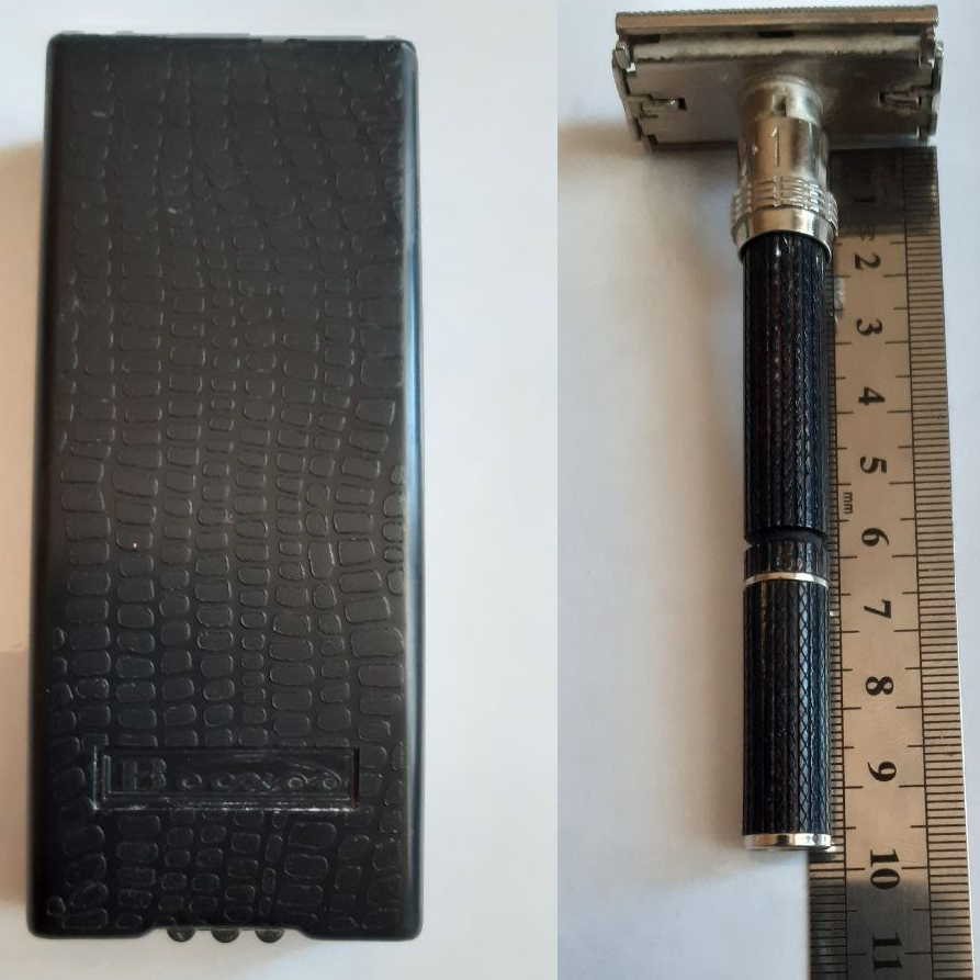 Открываем, тут внутри обито синим сукном, на верхней части желтой краской указан завод, логотип, ГОСТ. Внутри есть отсек под лезвия слева, а справа второй отсек разделен на ячейки под ручку и под голову. Все лежит на своих местах, но если положить в багаж, то будет подскакивать, надо положить что то, прямоугольник ткани, например, как прослойку На крышке снизу есть клеймо КЗ, года нет, думаю, что изготовлено где то во второй половине 50х. Открытая гребенка, потерь у покрытия нет, есть следы от ручки. Ручка двухсоставная, с приятной и цепкой насечкой. После получения, обработал весь станок и футляр изнутри Стериллиумом Длина станка в собранном виде 75 мм, вес 56 гр Вот так лежит в моей руке, ощущается очень миниатюрным Для примера, фото рядом со стандартной Мюле 41, разница велика Вылет лезвия. Он не идеально равномерный, где то больше, где то меньше, лезвие Астра зеленая, уши торчат значительно. Сначала подумал, что каждая сторона будет брить по своему... Итак, лезвие заряжено, все готово. Начал с той стороны, где вылет чуть меньше - хорошо идет по росту, мягко, никаких потягиваний и эффективно. Перевернул станок - странно, но тоже самое, разницы нет. До этого открытыми гребенками не брился. Снимает щетину очень хорошо, при этом деликатно, лезвие чувствуется, но не как острое, а как натянутая струнка, так же иногда ощущал зубья гребенки, но они не острые, просто есть, не доставляет проблем. Станок короткий, не совсем удобно было его полоскать от пены, вот прямо на грани. Верхняя часть ручки по толщине меньше, хотелось бы тут потолще, но в целом, ручка негатива не вызвала, ценкая и привыкнуть можно быстро. По росту очень хорошо снял и мягко. Пошел против, брило тоже неплохо, но той мягкости уже не было, не скажу, что жестко, но и не мягко, что то среднее. Зато эффективно, срезает с первого раза начисто. Поставил 1 точку на шее, в остальном все отлично. Часто ориентируюсь на бритье усов против, если есть проблемы, то в этой области они всплывут - при не эффективной бритве, приходиися тут елозить и часто щетину потягивает, бывают точки. А тут удивило - не тянуло ничего вообще и с 1 раза сняло чисто, никаких точек. Выбрился очень чисто, без шкрябаний по одному месту, тут этого не требуется, станок эффективный. Взял Клабмен Коньяк, щедро нанес, щипало да, на щеках и усах прямо чуть и мимолетно, на шее несколько сильнее. На шее внизу образовалось легкое покраснение после Клабмена, прошло через минуту, глянул в зеркало - все идеально. Астра себя тут хорошо показала, острая и эффективная, надо что то еще попробовать. Если сравнить с Кингом, то по росту КЗ бреет не так резко, идет мягче и снимает чуток больше, но против роста Кинг кажется помягче, но не такой эффективный, в зоне усов КЗ однозначно рулит. Когда собрал станок, вылет и гребенка казались довольно устрашающими, а по факту же совсем не так, я даже попробовал пару раз махнуть и станок чувствовался безопасным и комфортным. Думаю, что КЗ будет более вариативна в плане разных лезвий и будет выдавать разные результаты, в отличие от Кинга, который тут был довольно стабилен. Время покажет, но пока станок порадовал, визуально приятный, да и советский винтаж я люблю))) Станки производства СССР и постсоветского пространства.это