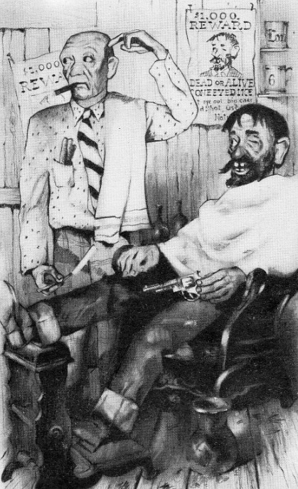 Опасная бритва в искусстве (картины, рисунки, фото, тату)Paul von Klieben (1895-1953). Пол фон Клибен был американским художником немецкого происхождения. Он начал свою карьеру в Чикаго как коммерческий художник и художник-портретист. Он путешествовал по городам-призракам на Западе и создал концепт-арт для большинства построенных здесь зданий. Его картины и фрески Дикого Запада украшали стены многих построек в парке, а его искусство широко использовалось в меню, брошюрах, каталогах и других документах.