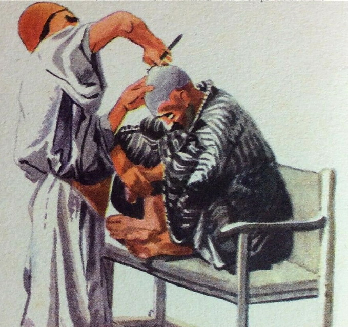 „Le barbier de village” „Деревенский цирюльник” Одного бреют: Другого намыливают: А теперь - сюрприз. Когда увидел гравюру Анри Биспо, она мне показалась знакомой и после проверки оказалось, что она похожа на картину Андреа Маркизио: viewtopic.php?p=238191#p238191 Оба художника жили в одном периоде и нельзя сказать, кто у кого списывал, но это факт. Посмотрите, цирюльник, клиент, собака и многое другое - одинаковые, но у Анри Биспо справа появился второй клиент, домик, помощница и целая куча людей. Вот, обе картинки рядом: С 2013 г. с кайфом бреюсь опасной бритвой пять раз в неделю, в три прохода.