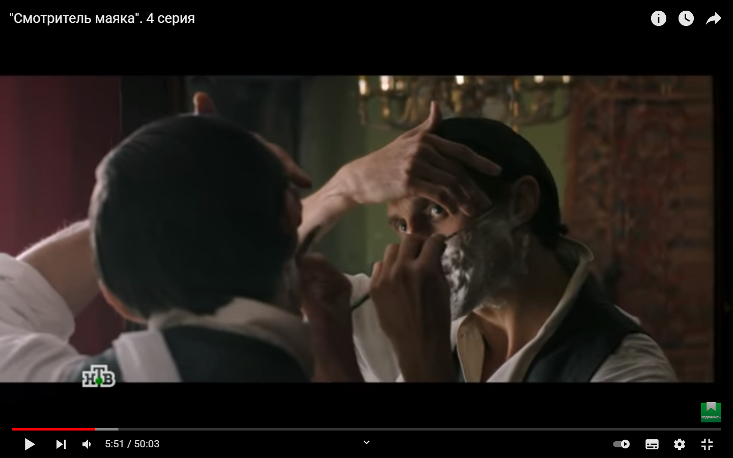Кому интересно, сцена бритья в 4-ой серии, начинается на 5:04.