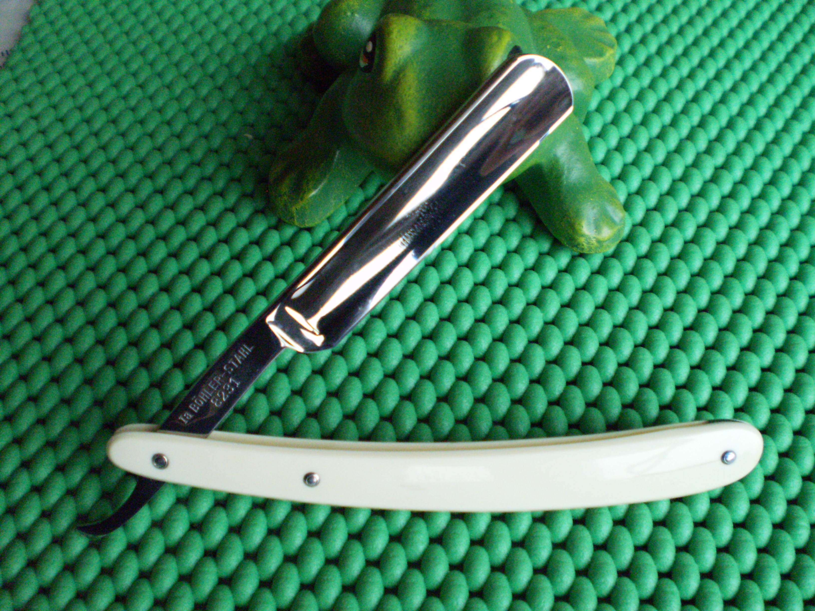 Но есть надпись: Ia BÖHLER-STAHL Я поставил среднюю заклепку, для прочности и для красоты. Бритва бреет мягко и комфортно. С 2013 г. с кайфом бреюсь опасной бритвой пять раз в неделю, в три прохода.