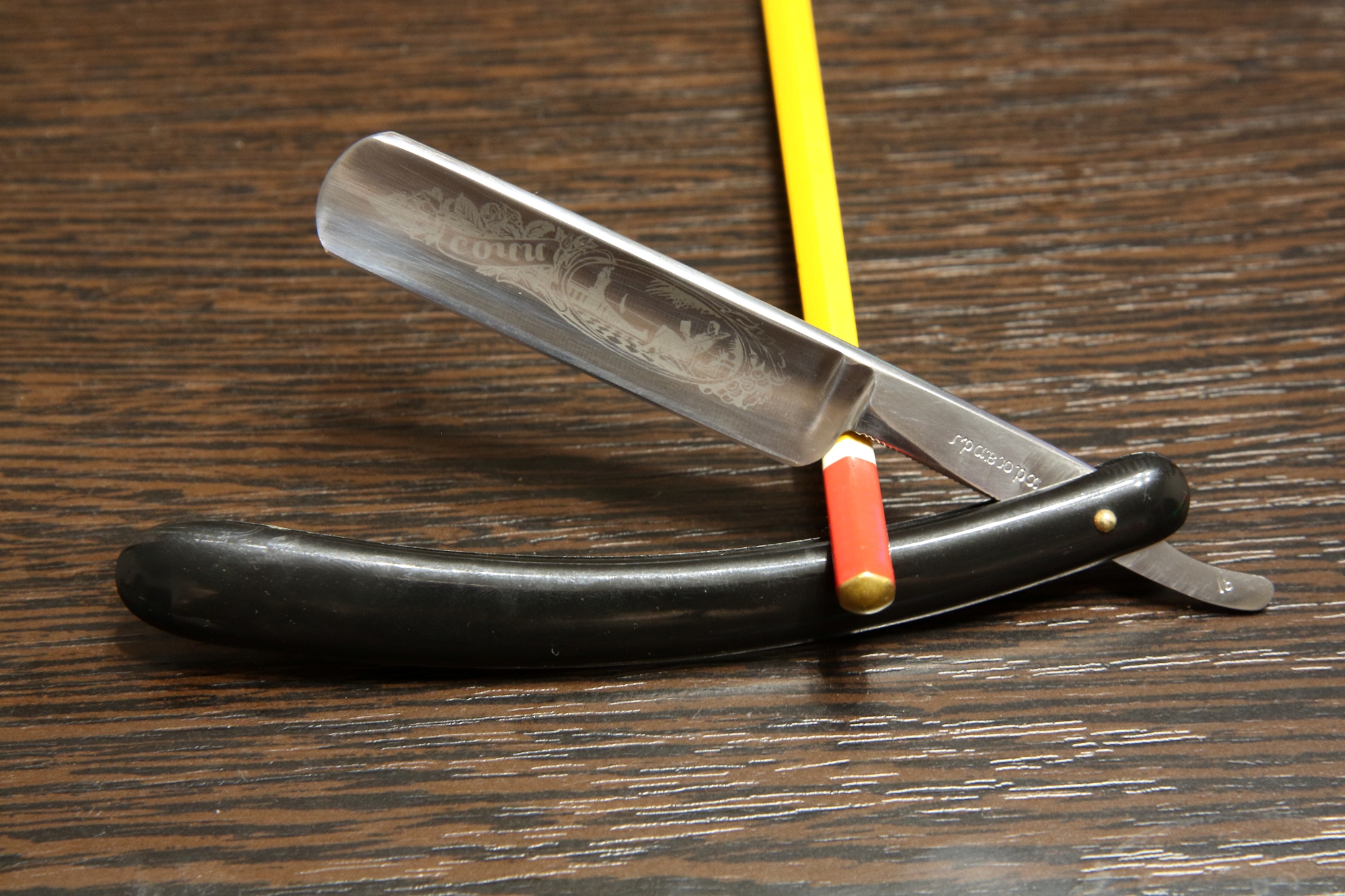 Опасная бритва Экстра, завод ЗТВ (Вача), 1966 год. Ширина полотна 18.2 мм, все родное в т. ч. футляр. Пришла без следов и в исходной ширине, вручную освежил полотно полиролью и заточил. Подготовлена мной к бритью. Бритвы Экстра ценились в парикмахерских за хорошие рабочие качества. Опробовал, отличное мягкое бритье, широкое полотно, удобная форма, качественная сталь, что еще нужно для хорошего использования. Цена - руб. К бритве рекомендую приобрести ремень для правки опасных бритв моего изготовления из итальянской кожи (подробнее на странице 4, объявления 56-58 и странице 9, объявления 127). Spoiler Show