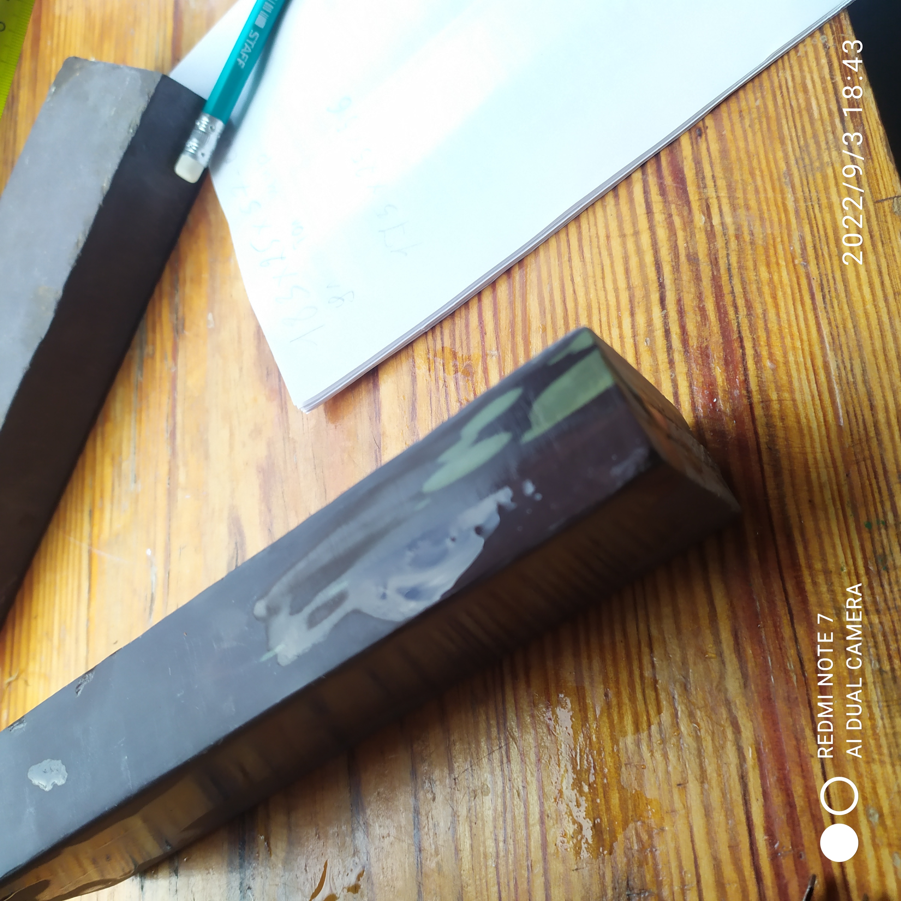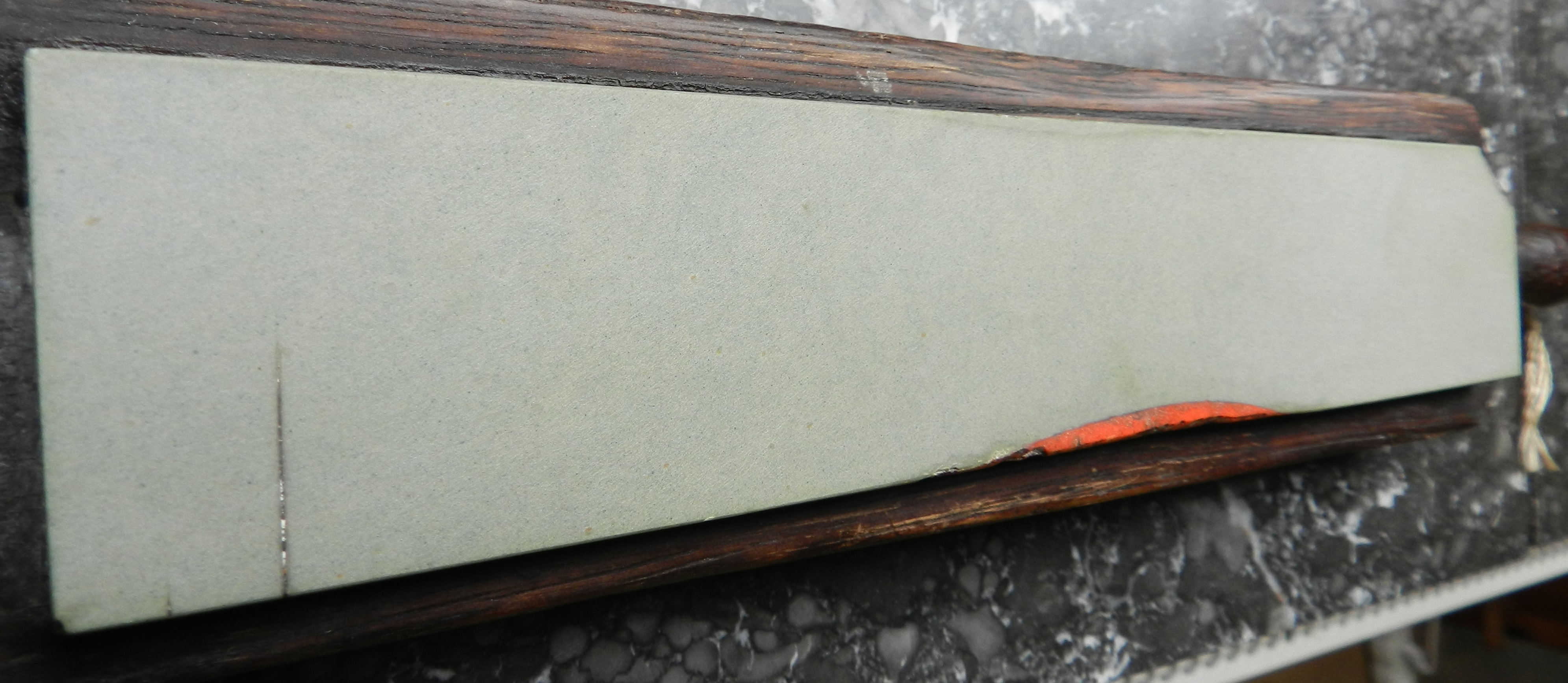 Приобрёл вот такой старый камень на борде. Похоже на классический сланец для доводки бритв. Размеры 20,5см х 4см. Очень долго доводил на Атоме 600, седло было приличное. Цвет светло серый/зеленоватый. На ощупь крайне гладкий, суспензия почти белая, твёрже чем мой жёлтый котикул (но всё же суспензию даёт без проблем). С края, заметен выход красного твёрдого камня. Доводил на нём пару бритв - результатом очень доволен. Что это за порода по вашему мнению?