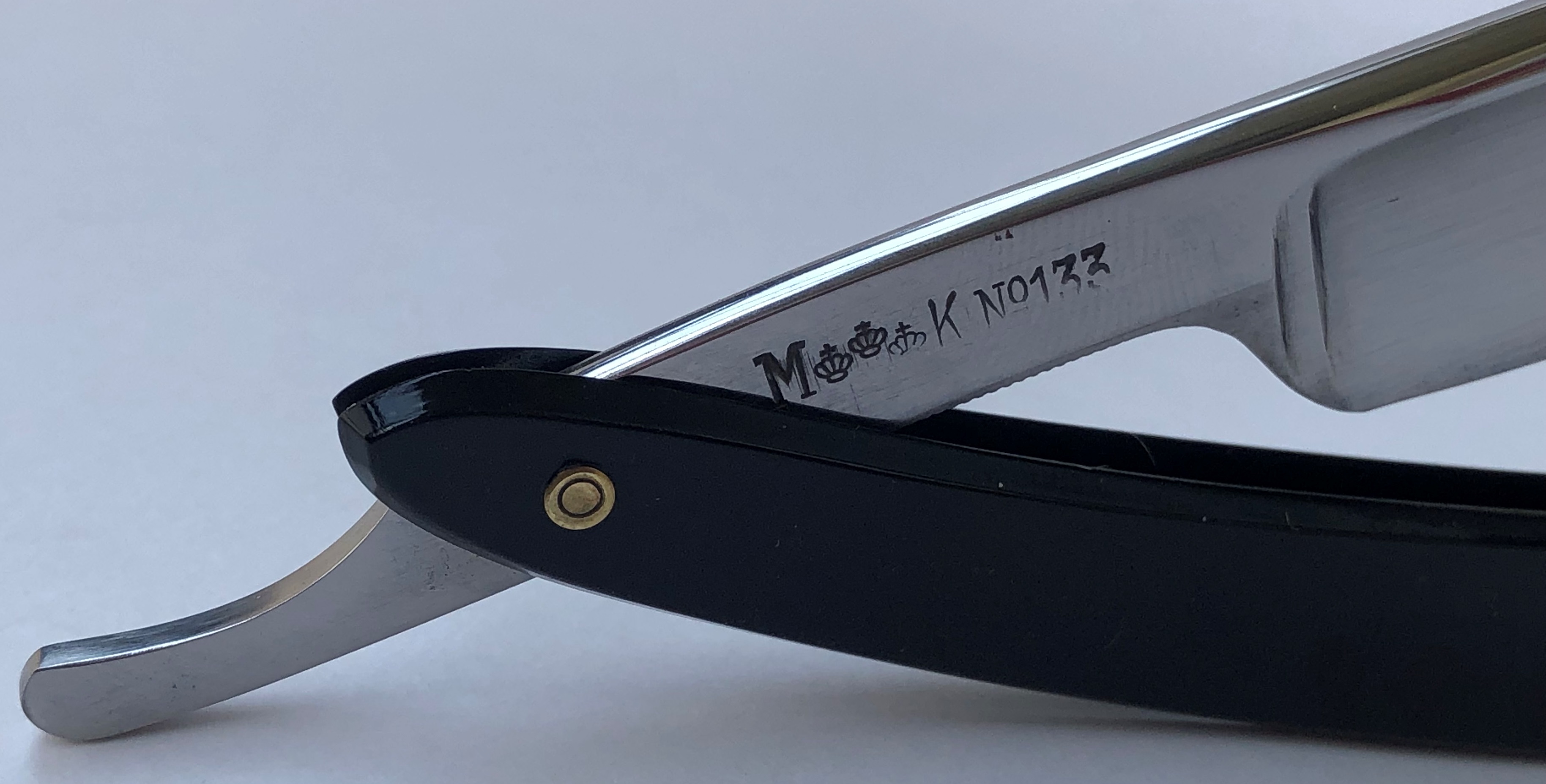 Само полотно на несколько мм укорочено.Было немного освежено от патины, с повторением "родного" характера шлифовки и умеренной полировки.Идеальная геометрия клинка. Сталь чистая, без видимых дефектов.Очень приятная во всех отношениях бритва, достаточно недорогая и если бы не укороченное полотно, то цены бы ей не было...