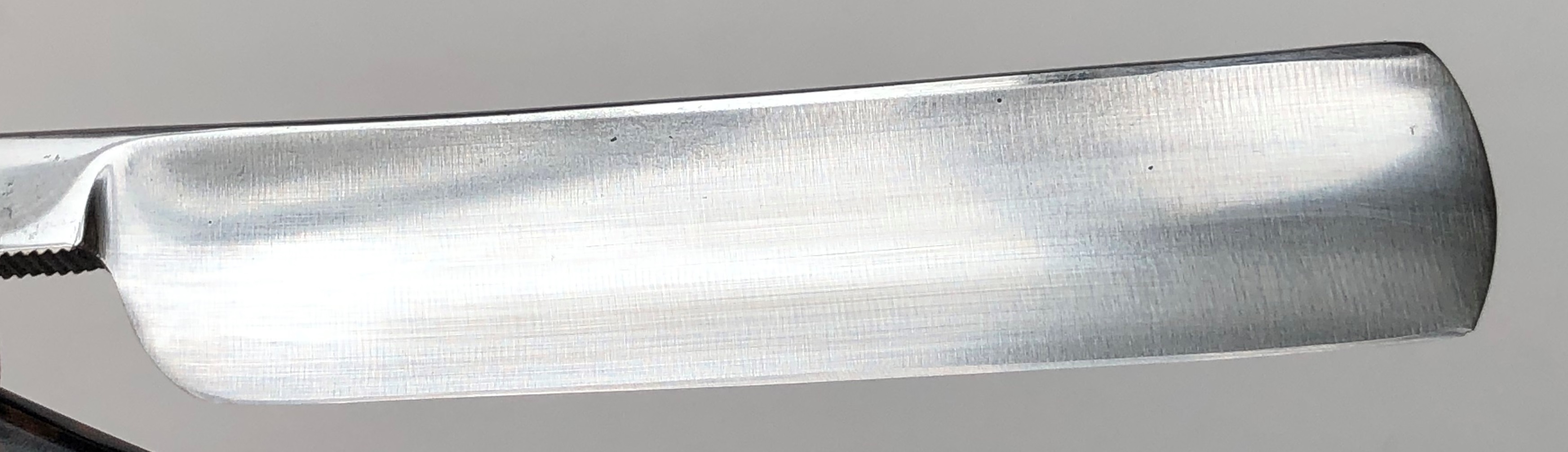 Бритва в прекрасном коллекционном, непользованном состоянии. Все оригинальное. Ничего не разбиралось и не ремонтировалось.Оригинальная шлифовка и полировка. Незначительные остатки патины не стал убирать, чтобы сохранить все в аутентичном виде.Идеальная геометрия полотна:кромочка равномерна по всей длине.