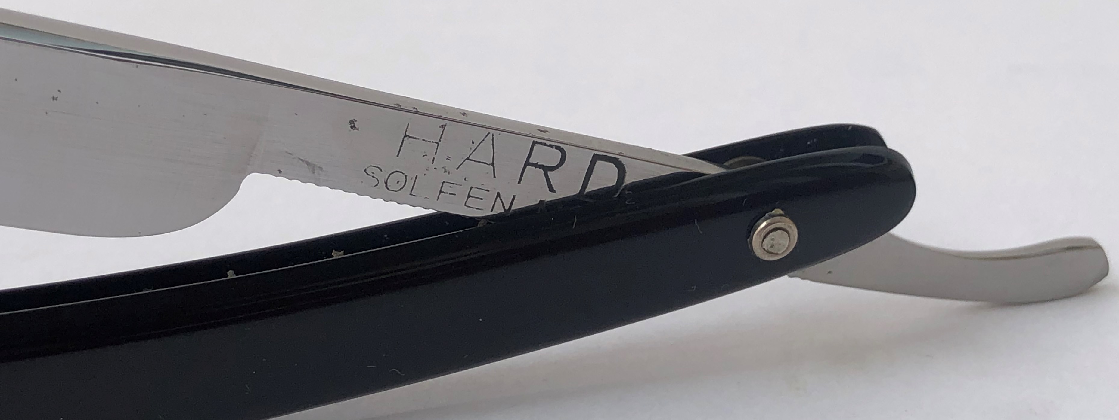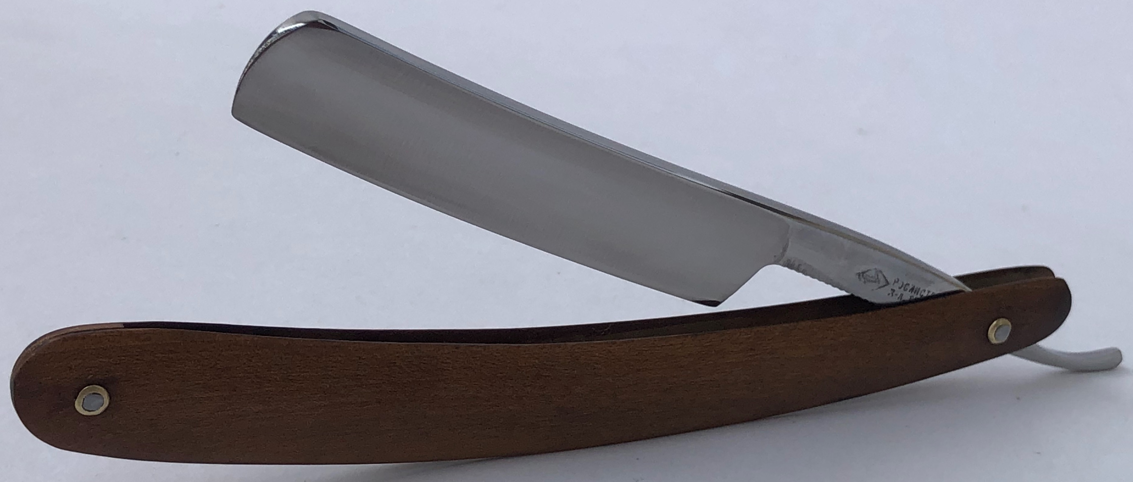Углеродистая сталь.Бритва в очень хорошем состоянии для своих 90 лет.Была разобрана, приведено полотно в рабочее состояние и заново собрано, с заменой родных пинов на втулки и добавлением внутренних шайб.Кромочка ровненькая по всей длине. Сталь чистая, без дефектов.Оригинальная буковая ручка находится в идеальном состоянии.Родная коробочка в комплекте!Бритва заточена и готова к бритью.