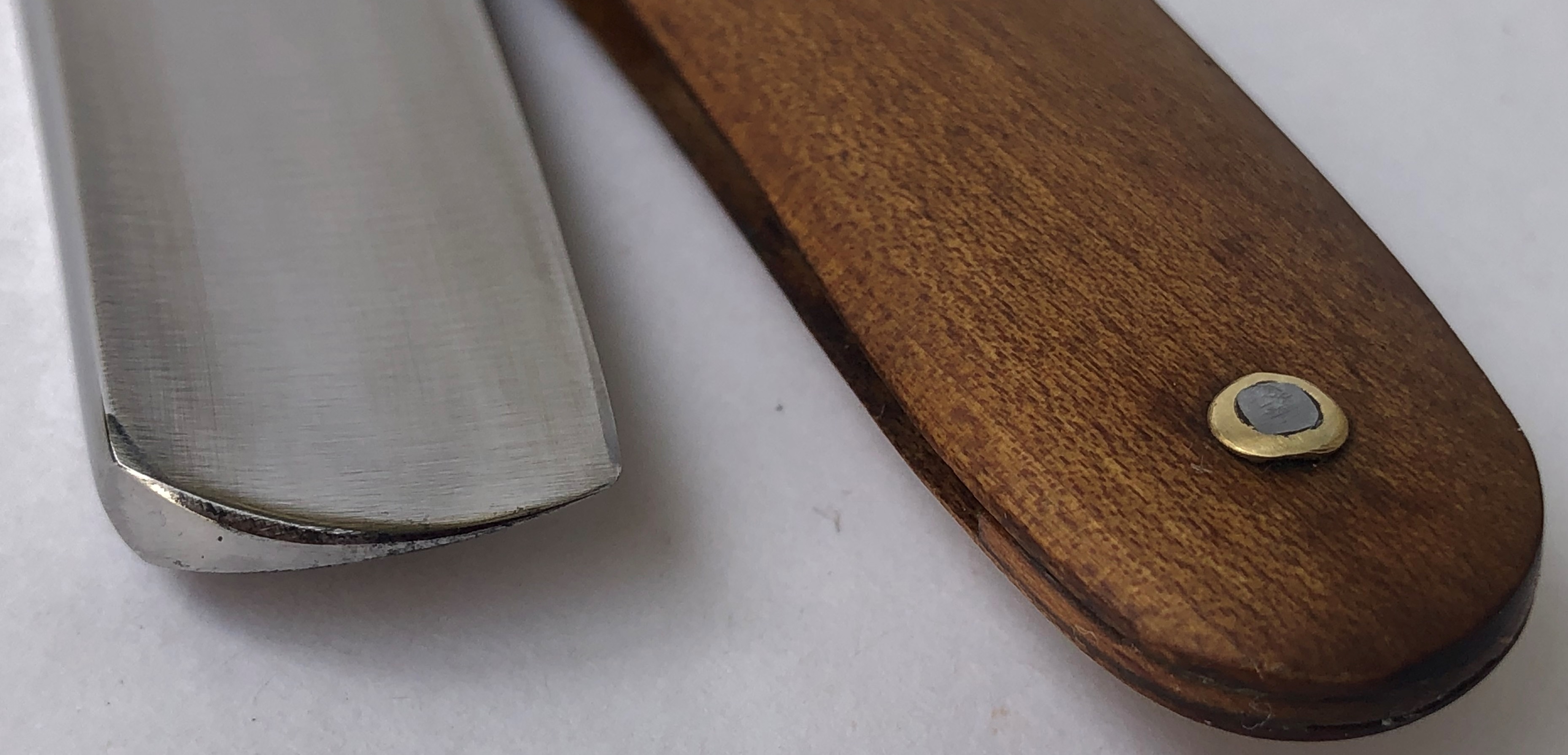 Бритва была разобрана и многолетняя патина была убрана, путем ручной шлифовки на камнях, по принципу шлифовки катан.Шлифовка полотна до 800 грит и полировка.Следы ковки на эрле оставил, как , по всей видимости было и задумано мастером.Поставил немецкие пины и добавил внутренние шайбы.