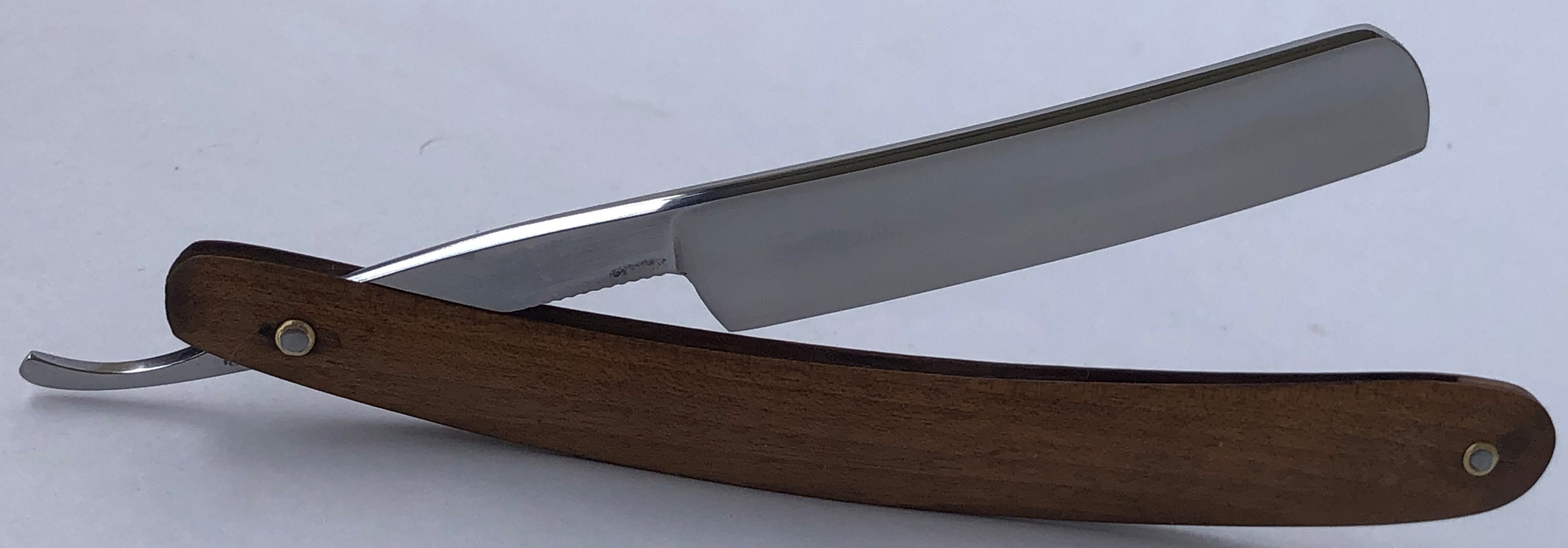 Углеродистая сталь.Бритва в очень хорошем состоянии для своих 90 лет.Была разобрана, приведено полотно в рабочее состояние и заново собрано, с заменой родных пинов на втулки и добавлением внутренних шайб.Кромочка ровненькая по всей длине. Сталь чистая, без дефектов.Оригинальная буковая ручка находится в идеальном состоянии.Родная коробочка в комплекте!Бритва заточена и готова к бритью.