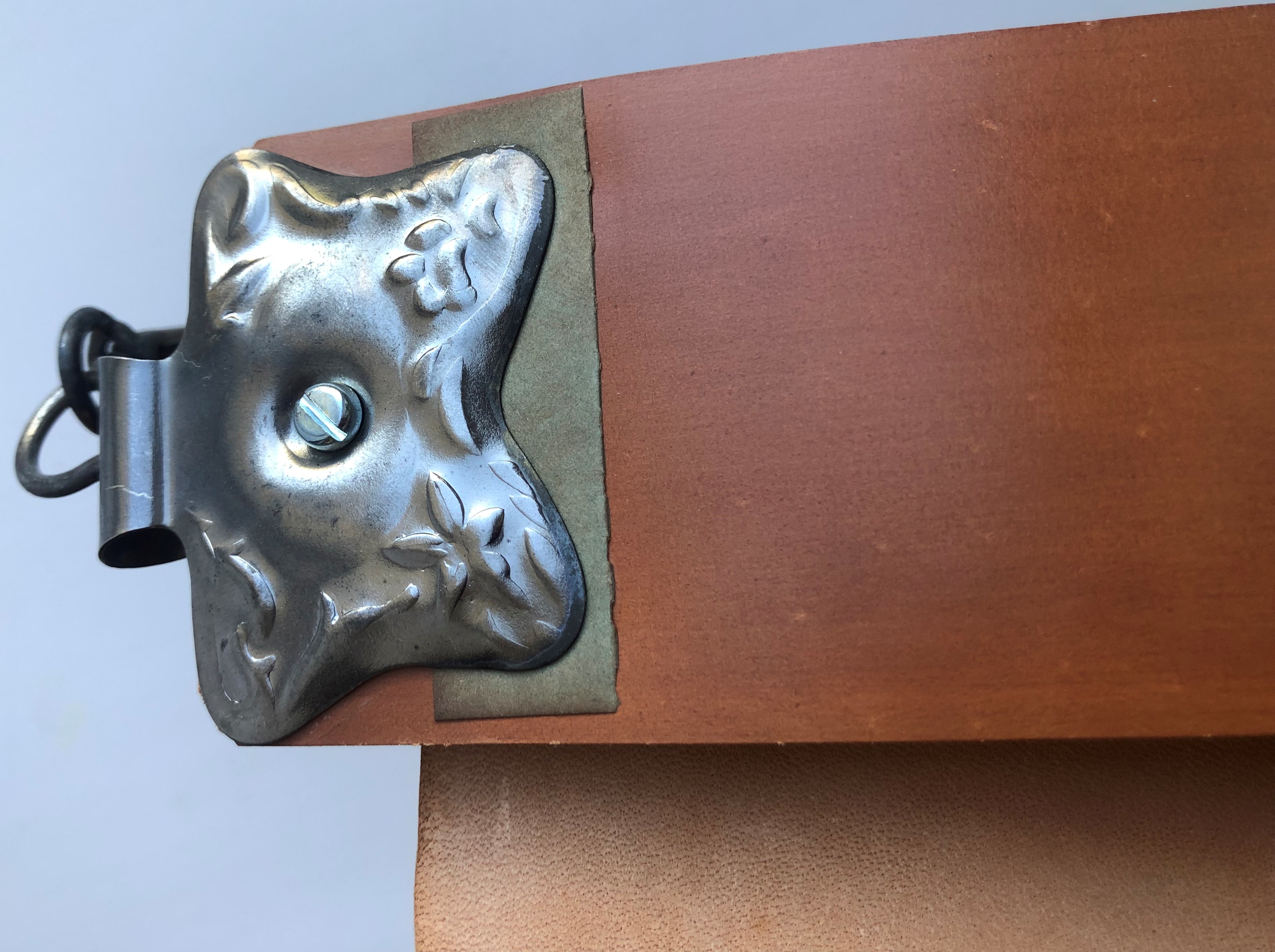 Ремень совершенно непользованный и исключительного качества.Из старых запасов.Остатки бумажки присутствуют.Кожа светлая,мягкая,умеренно эластичная, без трещин,прожилок и других дефектов.Не испорчена временем и неправильным хранением. Со временем рабочая поверхность кордована притрется, начнет зеркалить и работать еще тоньше.Вторая стропа с более толстой кожей, для предварительной правки.Тоже в идеальном состоянии.Исходя из своих наблюдений, такие стропы комплектовались ремнями для профессионального использования,именно на топовых экземплярах. Лучшего качества ремня для бритвенной правки уже сложно придумать..