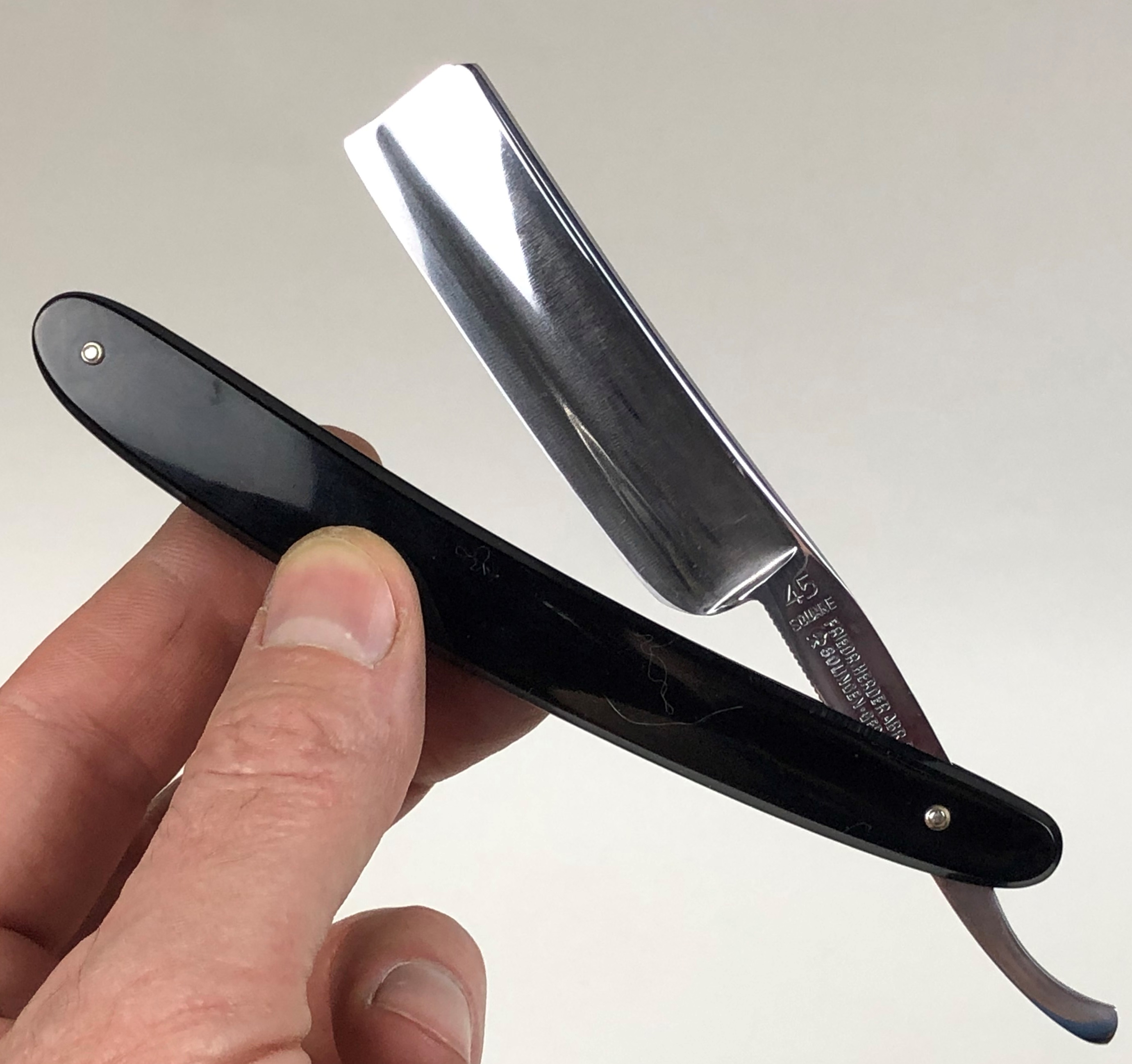 FRIEDR.HERDER ABR.SOHN-SOLINGEN, 45 модели. Ширина полотна-21 мм. Толщина обушка-5.6 мм Полная вогнутость. Углеродистая сталь. Примерно 50-70-е годы прошлого века. Историю компании можно найти в сети. Бритва без следов пользования, по всей видимости непользованная.Все в оригинале. Ничего не разбиралось и не ремонтировалось.Сталь и кромочка чистые, без дефектов. Идеальная геометрия полотна:кромка равномерна по всей длине.Коробочку раскопал от другой модели, намного старшей.Но, что есть, то есть... Бритва перед отправкой будет доведена до комфортного бритья. Цена-17500 р с доставкойПРОДАН Внимание! Важная информация! Spoiler Show