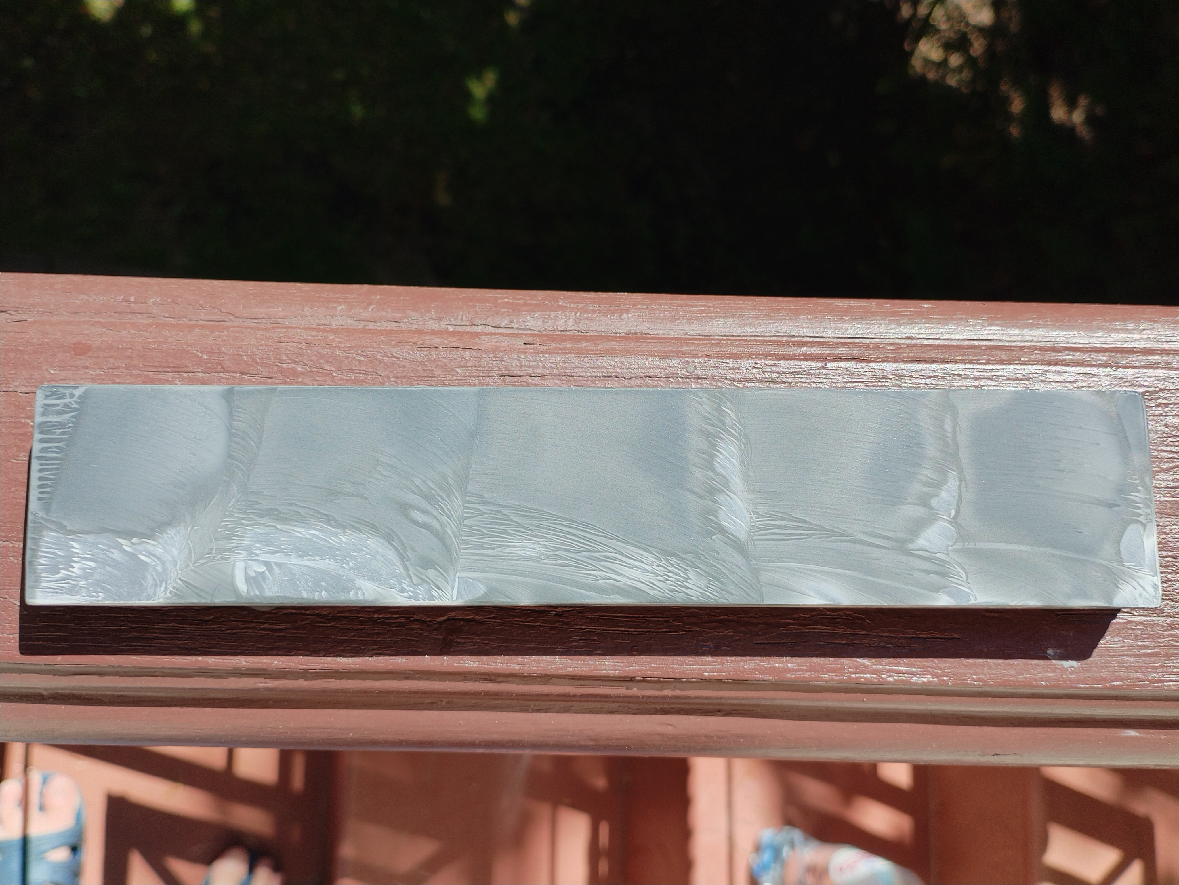 Прошу вашей помощи в атрибутировании камня, который недавно мне посчасливилось заполучить. Цвет матовый черный, суспензия выделяется охотно и имеет белесый цвет. На ощупь гладкий, бархатистый. Насколько я понял, это какой-то сланец, но вот какой? С торцов и боковой стороны видны характерные следы распила. Размеры: 182х33х14 мм. Камень был поцарапан, поэтому пришлось выровнять и притереть его с одной стороны 800, с другой 1000. Ваше мнение, что это может быть за сланец?