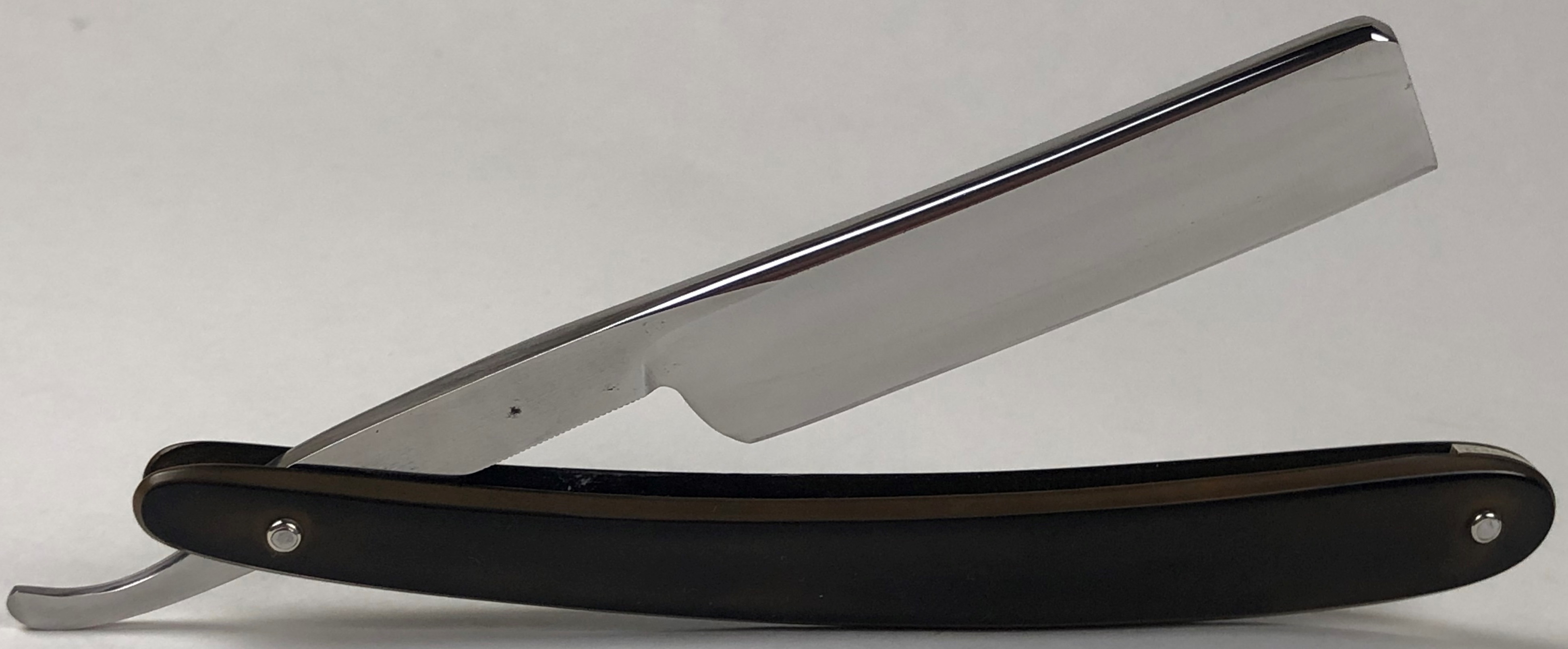 Бритва в отличном и непользованном состоянии. Оригинальная шлифовка и полировка полотна лезвия. Была разобрана ,для удаления окисления металла в районе осевого пина, а также добавлены внутренние шайбы.Родной осевой пин также удалось поставить обратно.Идеальная геометрия клинка:кромочка равномерна по всей длине.Бритва заточена и готова к пользованию.
