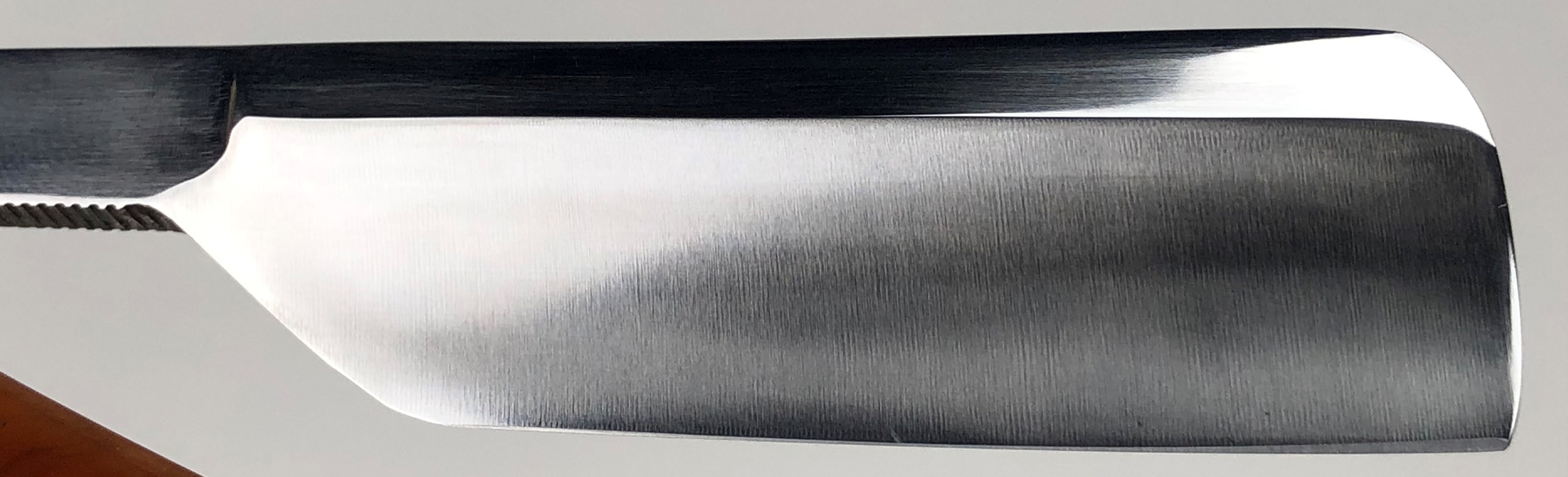Бритва не разбиралась.Находится в очень хорошем и малопользованном состоянии. Полотно перешлифовал и умеренно отполировал.Идеальная геометрия клинка:кромочка равномерна пов сей длине.Сталь чистая, без дефектов. Заточена и готова к бритью.