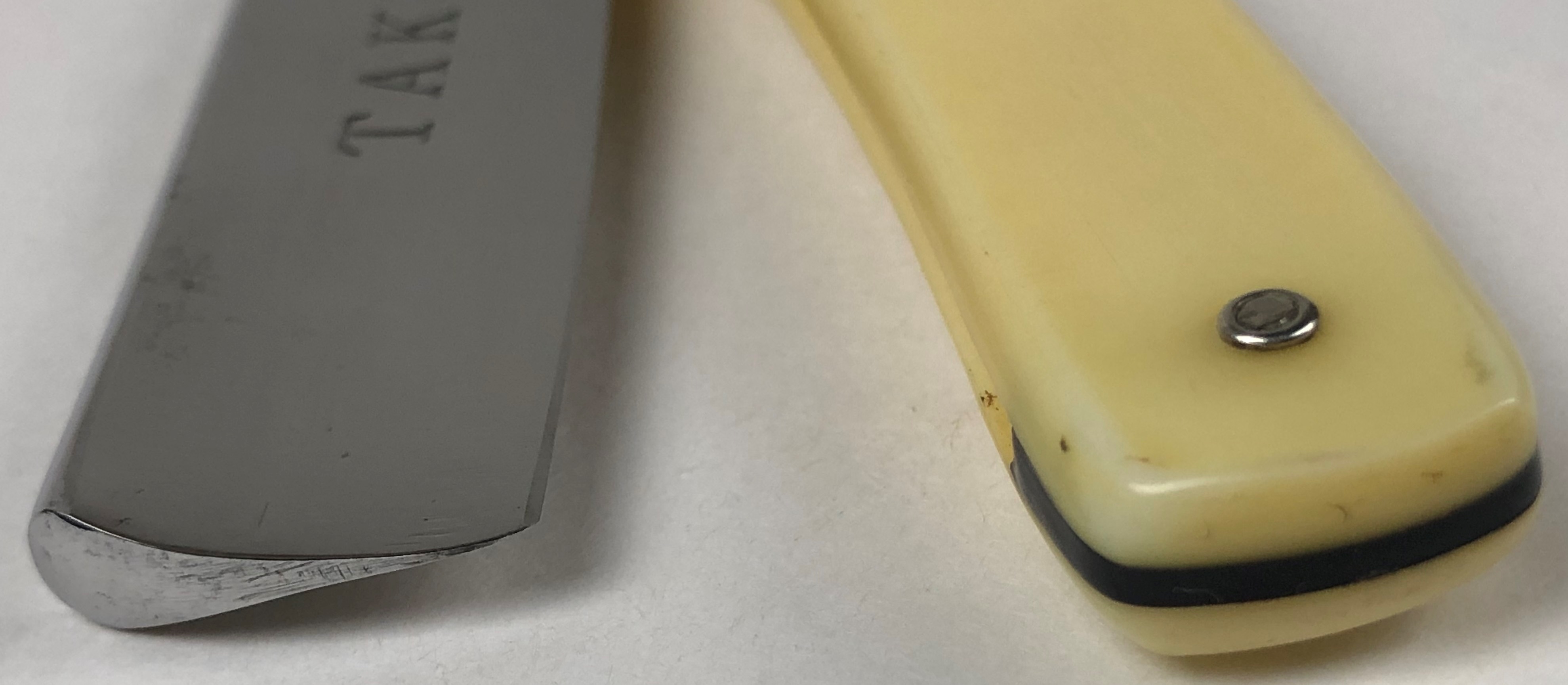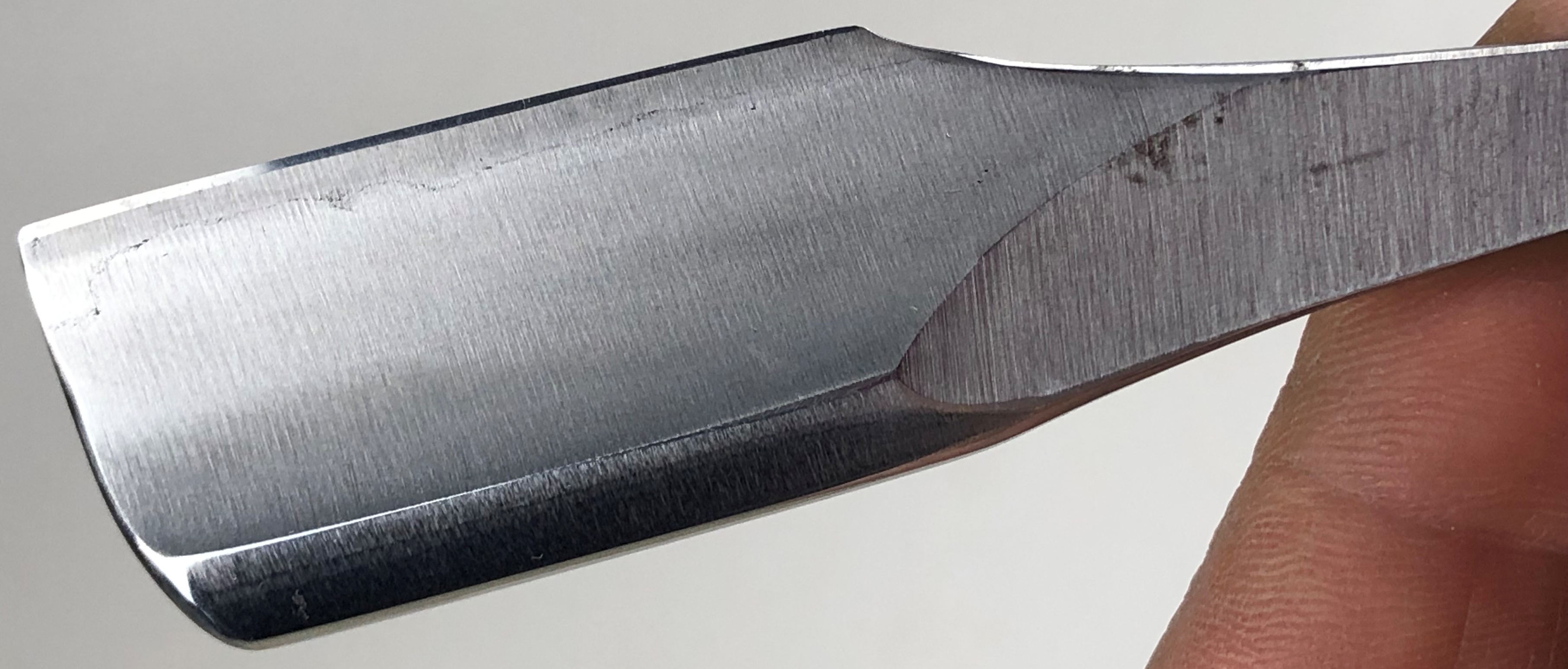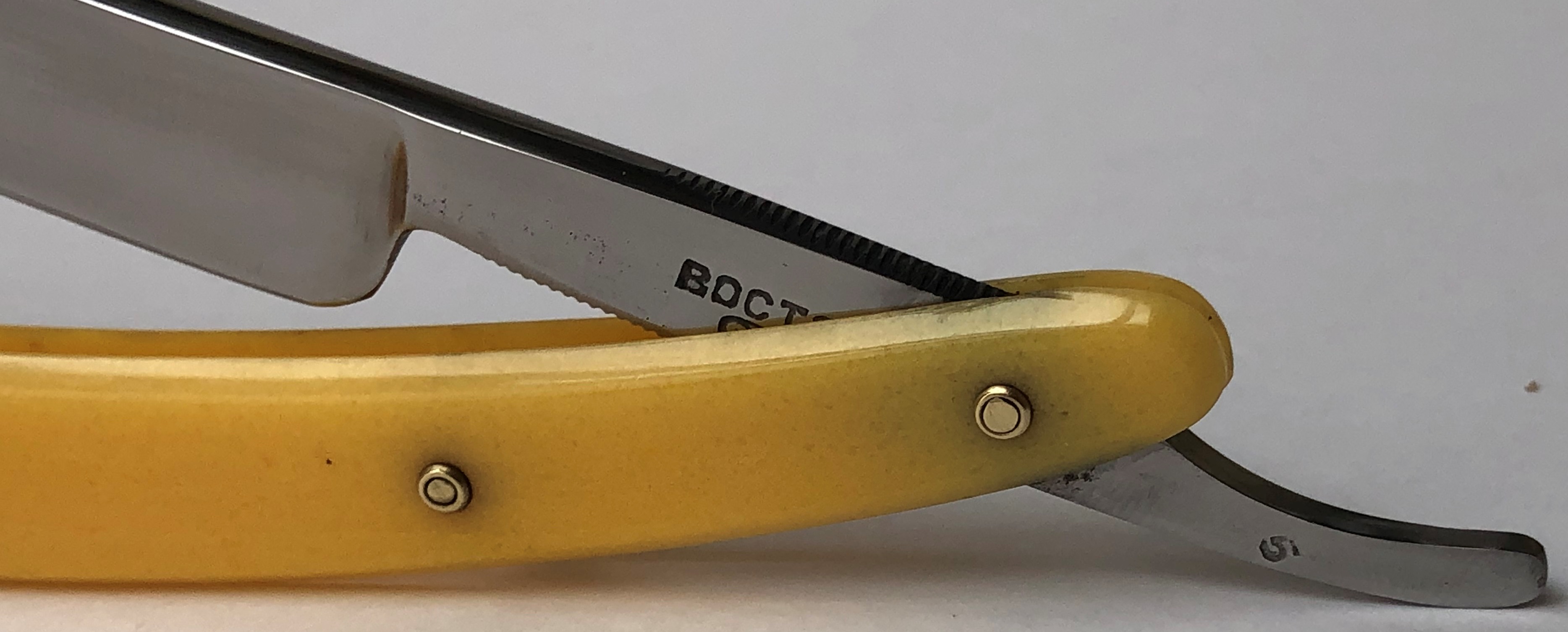 Бритва не разбиралась и не ремонтировалась. Все в оригинале. Заводская заточка была переделана под нормальное бритье.За исключением небольшого и малозначительного окисления с одной стороны полотно, все чисто, без дефектов. Геометрия приближена к идеальной.