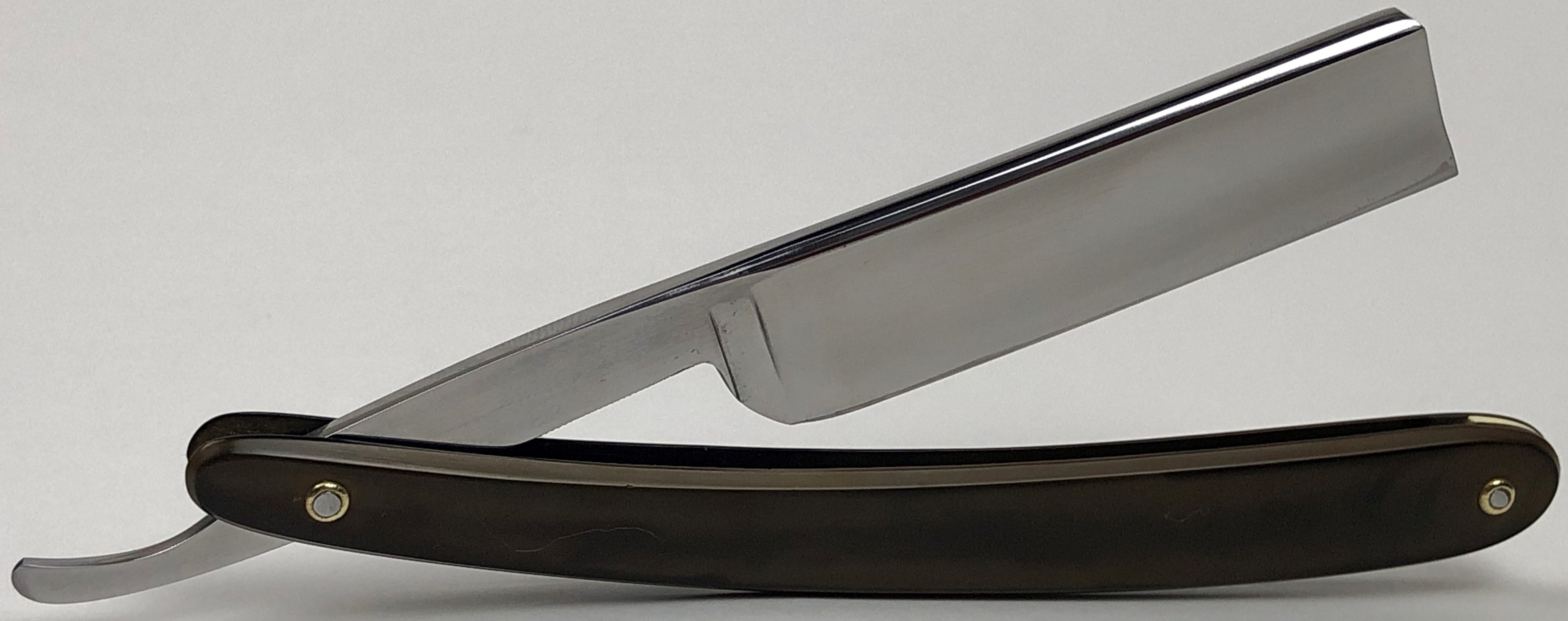 Бритва в пользовании не была.Но пришлось разобрать,чтобы почистить в районе осевого пина. Заодно самую малость освежил само полотно от патины и попробовал повторить "заводской" гринд.Дополнительно поставил внутренние шайбы и поменял оригинальные заклепки на двух-цветные пины.Бритва с виду имеет состояние новой. Идеальная геометрия полотна:кромочка равномерна по всей длине.Качественная сталь способна выдавать чистое и мягкое бритье. Также отличный вариант для новичка. Заточена и готова к бритью.
