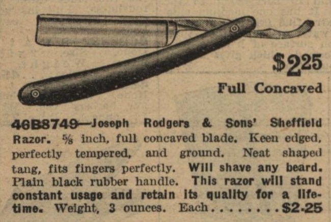 Несколько бритв из каталога торговой фирмы Alfred Field & Co, которая продавала продукцию Joseph Rodgers в США. 1938 год.