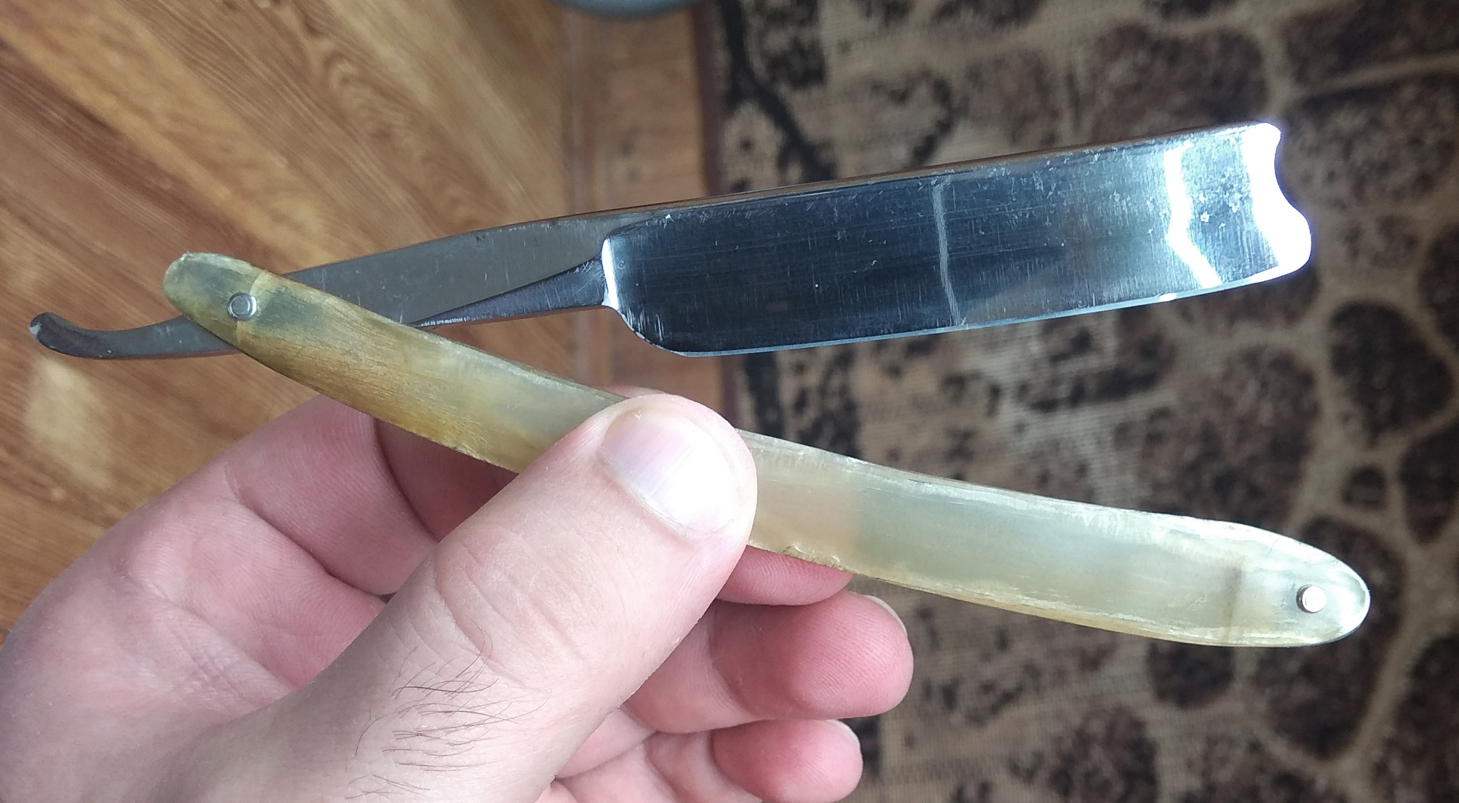 но вообще по бритве, я написал...есть скол, его нужно убрать будет, уйдет ширина... немного кривую заточку придется выровнять, будет больше фаска на обухе. можно сделать регринд, но тогда будет как-то по конченному, вроде бы и эксклюзивность в виде редкого хвоста и это несоответствие регринда к коллекционной составляющей. все это не добавляет ей ни стоимости, также и не должно прибавлять желания купить)) если, конечно, просто не положить ее в ящик к коллекции и забыть про нее :D