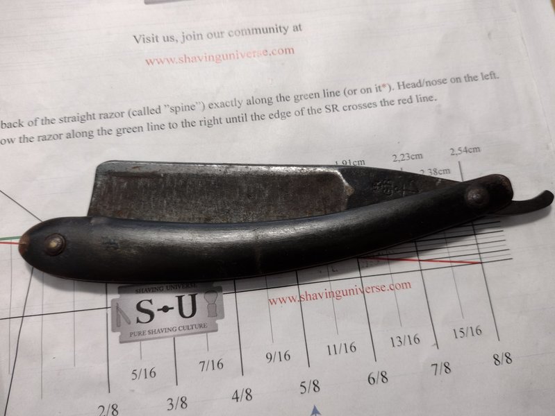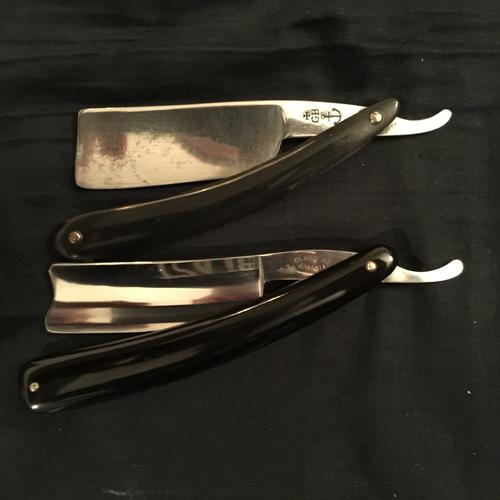 Spoiler Show George Brittain GB, Wilkinson & BrownellGeorge Brittain не любил маленькие и узкие бритвы, предпочитая 9/8, 10/8, 11/8 и даже 12/8. Вот сравнение его бритв с шеффилдскими "малышами" 7/8: