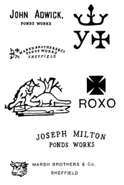 но не лишним будет ее отразить и здесь, поскольку темы разные и не объединены: Geoffrey Tweedale - Tweedale's Directory of Sheffield Cutlery Manufacturers 1740-2013 [2nd edition] История семьи столовых приборов Marsh восходит к 1631 году. К концу восемнадцатого века семья обосновалась как резчики пружинных ножей в Парковом районе Шеффилда, где компания William Marsh & Son была указана в каталоге в 1774 году. Уильям Марш ( 1737?-1780) получил свободу в 1758 году, когда он получил знак с изображением мальтийского креста и буквы «y», увенчанной короной. Это было предоставлено в 1713 году Сэмюэлю Шеперду - семье, с которой Болота стали связаны. (Подробные родословные этих семей были опубликованы в книге Сидни Полларда «История Marsh Bros», 1954 г., и в T. Walker Hall, 1915 г.) Вдова Уильяма, Ханна, на время взяла на себя бизнес, прежде чем ее сын Джеймс Марш (1761 г.) -1841), начал расширять бизнес. Компания James Marsh & Co была основана в 1810 году. Она переехала из Парка в Касл-Хилл примерно в 1815 году, а затем в 1822 году на Портер-стрит. Джеймс вышел на пенсию в 1819 году, когда капитал его фирмы составлял 10 000 фунтов стерлингов. Он уже привел в фирму своих сыновей от жены Маргарет - Уильяма Марша (крещение 1789-1860) и Джона Марша (1791-1858). Также участвовал зять Джеймса, Томас Шепард (ок. 1806–1845). Последний стал старшим партнером, и к середине 1820-х годов фирма получила название Marshes & Shepherd. Его продукция пользовалась особым спросом в США, где агентом в Филадельфии был другой сын Джеймса – Джеймс Марш (1792–1878). В 1825 году американец посетил «обширное заведение господ Шеперд и Марш» и написал, что они: в основном занимается производством столовых ножей, перочинных ножей и других видов столовых приборов. Был указан каждый процесс, даже самый незначительный, от ковки лезвия до последней полировки рукояти. Работа значительно сокращается и ускоряется за счет использования форм, часто придающих форму одним ударом молотка. Одна из самых любопытных операций – подготовка рожка для рукояти. Он размягчается под совместным воздействием огня и воды, а затем спрессовывается в форму горячими железными пластинами, при этом материал выходит из формы хорошо отполированным» (Carter, 1827 1 ). В 1828 году компания Marshes & Shepherd переехала в Ponds Works, Forge Lane. Это было недалеко от Бейкерс-Хилл и в районе, известном своими ручьями, мельничными прудами, плотинами и зобами (сейчас на месте спортивного центра Ponds Forge). Это был типичный дворовой завод с домом и садом, складом, конторой, кузницей, старыми водяными колесами, тигельной стальной печью, прокатным станом, точильными камнями и машинным отделением. Не хватало только комплекта конвертерных печей для черновой стали. В 1830-х годах фирма возводила их и на соседнем Навигационном заводе. К концу 1840-х годов у него были сталелитейные мощности на заводе Columbia Works, который освободил Джон Браун . Между 1828 и 1837 годами капитал вырос с 28 000 фунтов стерлингов до 58 000 фунтов стерлингов, поскольку фирма начала продавать сталь, пилы, напильники и множество различных типов режущих инструментов. В 1838 году она приобрела инструментальный бизнес Джеймса Кэма (см. Cam & Birks ). Как писал историк фирмы: «Сохранение высокого качества этих разнообразных товаров должно само по себе считаться большим достижением партнеров, проделавших путь в мире от мелких мастеров столовых приборов с пружинными ножами в одном поколении. '(Поллард, 1954). Название компании можно было найти на карман