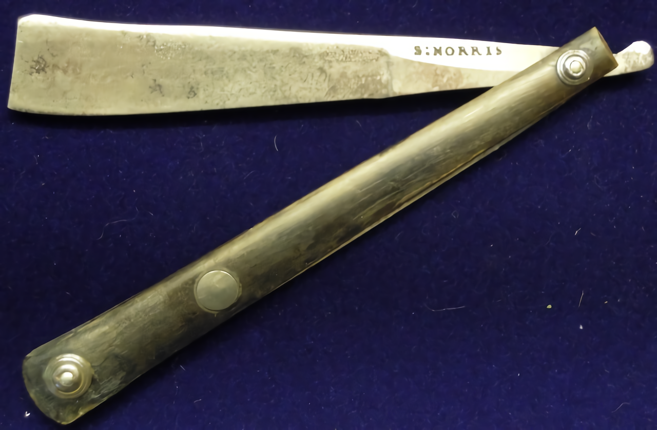 1774, Sketchley’s Sheffield Directory: 1787, Gales & Martin, A directory of Sheffield: 1797, John Robinson, A Directory of Sheffield: Geoffrey Tweedale, Directory of Sheffield Cutlery Manufacturers, 1740-2022 (3rd edition, forthcoming): ФОКС И НОРРИС Стивен Фокс (р. 1691) был мастером ножей и бритв из Шеффилда. Его дочь Кэтрин в 1739 году вышла замуж за мастера по изготовлению бритв из Шеффилда Мэтью Норриса (ок. 1718–1761). Один из их сыновей, Сэмюэл Норрис (1745–1817), приходился племянником Джону Фоксу (1714–1793) и, по-видимому, стал партнером последнего по производству бритв. Fox & Norris была зарегистрирована в 1774 году как производитель бритв, складных и перочинных ножей в Вестбаре. Партнеры использовали знак, который включал «P», «ROOM» (или «ROME») и «MATAS». (Другая ветвь семьи включала Уильяма Фокса.) Сэмюэл Норрис унаследовал бизнес после смерти Джона Фокса. У «Сэмми» Норриса был большой дом и мастерские на Вест-Бар. Он был мастером Катлером в 1777 году. Воспоминания вождя (1876) 1описал историю семьи как «печальную». У Самуила была большая семья, но многие умерли в младенчестве. Два сына, Джон (1780–1826) и Томас (1782–1816), присоединились к фирме и начали торговать с Германией. Однако поездка Томаса в Лейпциг примерно в 1808 году закончилась плачевно. Он потерял большой запас товаров, когда вторглась французская армия, что сделало бизнес его отца неплатежеспособным. Сэмюэл стал получателем благотворительной помощи Компании Катлеров и умер в возрасте 71 года в больнице Шрусбери 16 июля 1817 года. Он был похоронен на кладбище Святых Петра и Павла. По словам Лидера, Джон жил в благородной бедности. Он умер в Хиллфуте и был похоронен в Экклсфилде. Томас присоединился к Церкви и умер 6 октября 1816 года в Челси, Лондон. По иронии судьбы торговую марку приобрел Джон Генри Хардер — немец, которого Томас привез в Англию в качестве клерка. 1. Лидер, Роберт Э., Воспоминания о Старом Шеффилде (Шеффилд, 2-е изд. 1876 г.) Spoiler Show FOX & NORRIS Stephen Fox (b. 1691) was a Sheffield cutler and razor maker. His daughter, Catherine, in 1739 married Sheffield razor smith, Matthew Norris (c.1718-1761). One of their sons, Samuel Norris (1745-1817), was nephew to John Fox (1714-1793) and apparently became partner in the latter’s razor business. Fox & Norris was listed in 1774 as a manufacturer of razors, jack-knives, and pocket knives, in Westbar. The partners used a mark which included ‘P’ ‘ROOM’ (or ‘ROME’) and ‘MATAS’. (Another branch of the family included William Fox.) Samuel Norris inherited the business on John Fox’s death. ‘Sammy’ Norris had a large house and workshops on West-bar. He was Master Cutler in 1777. Leader’s Reminiscences (1876)(1) described the family’s history as ‘a sad one’. Samuel had a large family, but many died in infancy. Two sons, John (1780-1826) and Thomas (1782-1816), joined the firm and began trading with Germany. However, Thomas’s trip to Leipzig in about 1808 ended badly. He lost a large stock of goods when the French army invaded, which rendered his father’s business insolvent. Samuel became a recipient of the charity of the Company of Cutlers’ and died, aged 71, in Shrewsbury Hospital on 16 July 1817. He was buried in St Peter & St Paul graveyard. According to Leader, John lived on in genteel poverty. He died in Hillfoot and was buried in Ecclesfield. Thomas joined the Church and died on 6 October 1816 in Chelsea, London. Ironically, the trade mark was acquired by John Henry Harder – a German, whom Thomas had brought to England as a clerk. Harder traded as an iron merchant, until his death, aged 77, on 14 January 1876. 1. Leader, Robert E, Reminiscences of Old Sheffield (Sheffield, 2nd edn 1876) Очень старые английские бритвы (до 1810 года).Бритвы Fox & Norris: