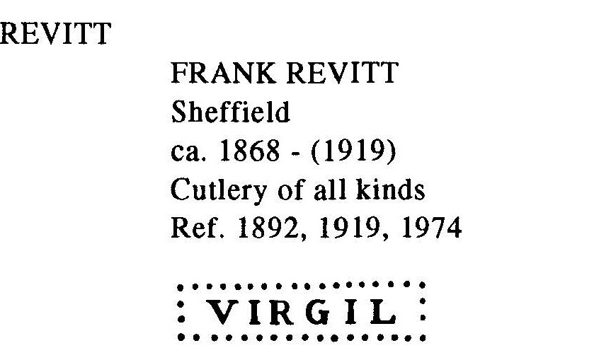 Это предприятие использовало отличительную торговую марку «Вирджил» и, по-видимому, было основано в 1750 году. Семья возникла в Стэннингтоне, где «Ревитт» — очень распространенное имя. Катлеры в этой местности имели пристрастие к поэтам древности, когда изобретали свои знаки. Джон Ревет использовал «Вирджил» в Станнингтоне в 1787 году как производитель бритв. В то время Ричард Ревет, также живший в Станнингтоне, использовал на своих бритвах обрамленное слово «ГОМЕР».
