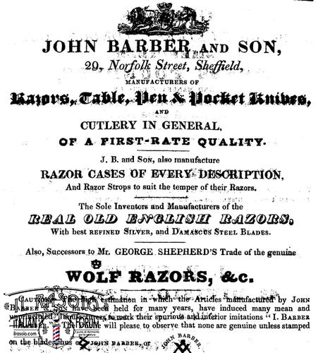 1787, Gales & Martin, A directory of Sheffield: Очень старые английские бритвы (до 1810 года).Shepherd John, WOLF: