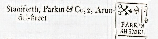 1774, Sketchley’s Sheffield Directory: Очень старые английские бритвы (до 1810 года).Staniforth, Parkin, and Co, PARKIN, HAGUE, SHEMEL: