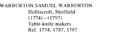 1774, Sketchley’s Sheffield Directory: 1787, Gales & Martin, A directory of Sheffield: 1797, John Robinson, A Directory of Sheffield: Geoffrey Tweedale - Tweedale's Directory of Sheffield Cutlery Manufacturers 1740-2013 [2nd edition]: УОРБЕРТОН Несколько членов семьи Уорбертон занимались торговлей столовыми приборами в конце восемнадцатого и начале девятнадцатого веков (и это имя также встречается до этого в списках Freemen). Их истории трудно разгадать, но была собрана следующая разрозненная информация: Samuel Warburton : зарегистрирован как производитель карманных ножей в Hollis Croft между 1774 и 1797 годами (торговая марка WARBURTON). Samuel Warburton , зарегистрированный в Bridgehouses между 1774 и 1797 годами, производил перочинные ножи и бритвы (торговая марка LIFE). Торговая марка LIFE позже использовалась Джорджем Лэтэмом и Фрэнсисом Таунсендом. Уильям Уорбертон : внесен в список 1797 года на Милк-стрит с использованием знака «WLM» на столовых ножах. Томас Уорбертон : производитель бритв, зарегистрированный в Coalpit Lane (1774, 1787); Берджесс-стрит в 1787 г. (торговая марка «ЛИССАБОН», с крестом); и Чарльз-стрит (1811 г.). Томас Уорбертон числился производителем бритв на Чарльз-стрит примерно с 1817 по 1830-е годы. Кузнец с таким именем на Чарльз-стрит был похоронен на соборе Святого Петра 24 декабря 1821 года в возрасте 74 лет. Однако это имя все еще числилось на Чарльз-стрит до 1833 года, когда адрес стал Арундел-стрит. Томас Уорбертон, Арундел-стрит, умер 18 июня 1833 года в возрасте 56 лет, хотя в книге захоронений Святого Петра он указан как производитель ножниц, а не кузнец бритв. Кроме того, Томас Уорбертон, неизвестный, но работавший ножовщиком в плетеной лавке, был похоронен на кладбище Святого Петра 15 декабря 1831 года в возрасте 29 лет. Джозеф Уорбертон : производитель столовых ножей, который заключил партнерство с Томасом Джонсоном Бэджером. Компания Warburton & Badger, зарегистрированная как производитель и продавец столовых ножей на Понд-стрит, 45 в 1825 году, была распущена в 1828 году. Джозеф числился один в Wicker между 1828 и 1846 годами. Вероятно, это был Джозеф Уорбертон, умерший 17 октября 1846 года ( в возрасте 50 лет) и был описан в своем некрологе для прессы как производитель столовых ножей и старший сын покойного Уильяма Уорбертона. Он был похоронен на кладбище Святого Петра. Spoiler Show WARBURTON Several members of the Warburton family were active in the cutlery trades in the late eighteenth and early nineteenth centuries (and the name also occurs before then in the listings of Freemen). Their histories are difficult to unravel, but the following disparate information has been collected: Samuel Warburton: listed as a manufacturer of pocket knives in Hollis Croft between 1774 and 1797 (trade mark ‘WARBURTON’). Samuel Warburton, listed in Bridgehouses between 1774 and 1797, making pen knives and razors (trade mark ‘LIFE’). The ‘LIFE’ trade mark was later used by George Latham and Francis Townsend. William Warburton: listed in 1797 in Milk Street, using the mark ‘WLM’ on table knives. Thomas Warburton: razor manufacturer, listed in Coalpit Lane (1774, 1787); Burgess Street in 1787 (trade mark ‘LISBON’, with a cross); and Charles Street (1811). Thomas Warburton was listed as a razor manufacturer in Charles Street between about 1817 and the 1830s. A razor smith of that name in Charles Street was buried in St Peter’s on 24 December 1821, aged 74. However, the name was still listed in Charles Street until 1833, when the address became Arundel Street. Thomas Warburton, Arundel Street, died on 18 June 1833, aged 56, though St Peter’s burial register described him as a scissors manufacturer and not a razor smith. Additionally, Thomas Warburton – unidentified, but a cutler in the Wicker – was buried St Peter’s churchyard in 15 December 1831, aged 29. Joseph Warburton: manufacturer of table knives, who formed a partnership with Thomas Johnson Badger. Listed as a table knife manufacturer and dealer in 45 Pond Street in 1825, Warburton & Badger was dissolved in 1828. Joseph was listed alone in the Wicker between about 1828 and 1846. He was probably the Joseph Warburton, who died on 17 October 1846 (aged 50) and was described in his press obituary as a table knife manufacturer and the eldest son of the late William Warburton. He was buried in St Peter’s churchyard. Очень старые английские бритвы (до 1810