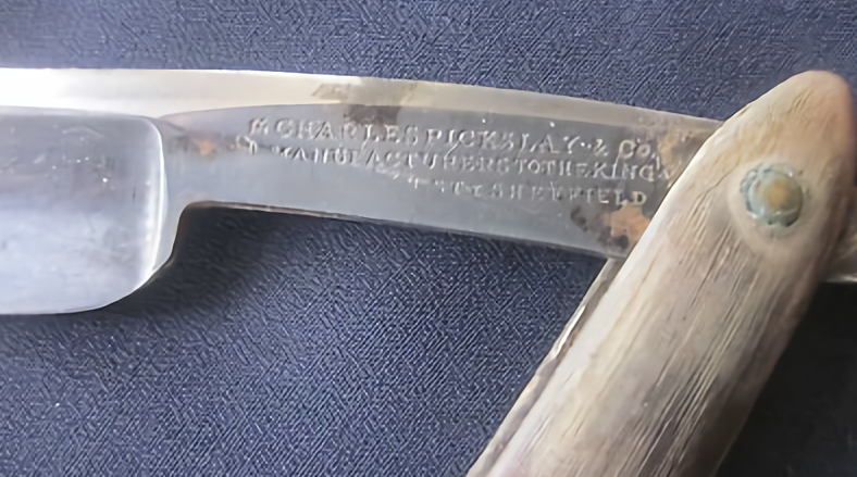This puff for what was no more than a High Street ironmonger seems to have been an attempt to ape Joseph Rodgers’ showroom and royal patronage. Thomas Asline Ward sarcastically described it as a ‘flaming advertisement’ and poked fun at the ‘debased Strawberry Hill Gothic’ of the vaunted Show Rooms (Bell, 19102). Ward was a friend of Pickslay and wrote about him in his diary. They joined the local Volunteers together and shared an interest in helping the poor and in various reform projects (such as those relating to elementary schools, the abolition of gin shops, and ending the employment of boy chimney sweeps). Ward evidently had more regard for Pickslay’s militia skills than his business abilities. He believed that Pickslay was too trusting and had a weakness for experimentation and inventing. In the 1820s, Pickslay had corresponded with Michael Faraday about the latter’s experiments in alloying steel with silver and other elements. This led to Pickslay’s speciality: knives, scissors, and razors made from ‘Peruvian Steel’. Some of Pickslay’s ‘Peruvian’ razors and knives have survived, though whether they contained silver, iridium, or rhodium has never been settled.