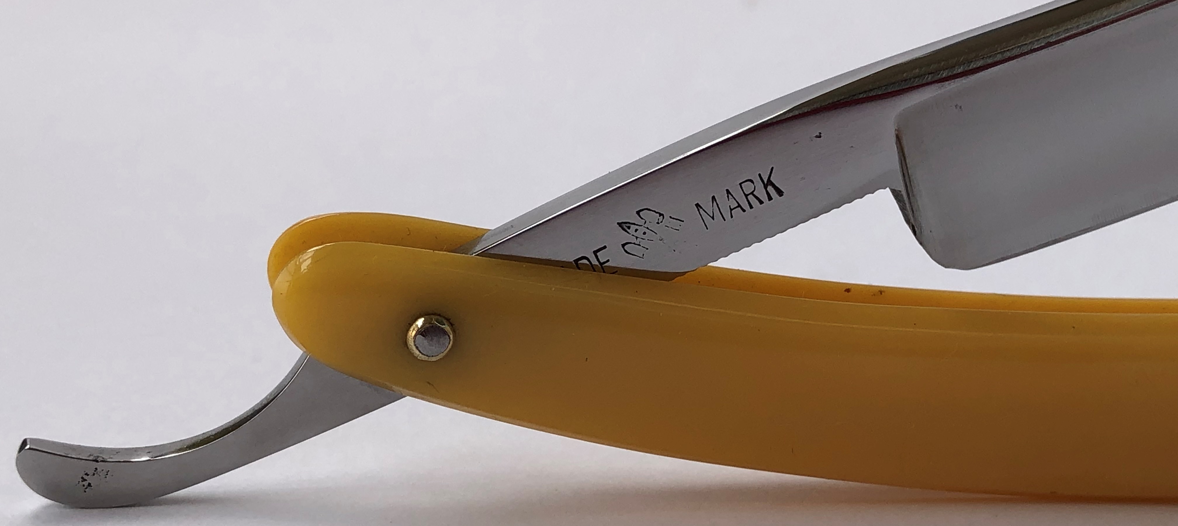 Такие ручки ставили на профессиональные "ПАРИКМАХЕРСКИЕ" модели за номером 1 от Вачи.(Может еще на какие, не помню).Смею предположить, что и эта более узкая "ВЕСНА" предназначалась для парикмахерского использования. Идеальная геометрия полотна:кромочка равномерна по всей длине.Родная коробочка(61 г.в) и инструкция(62 г.в.) в комплекте!