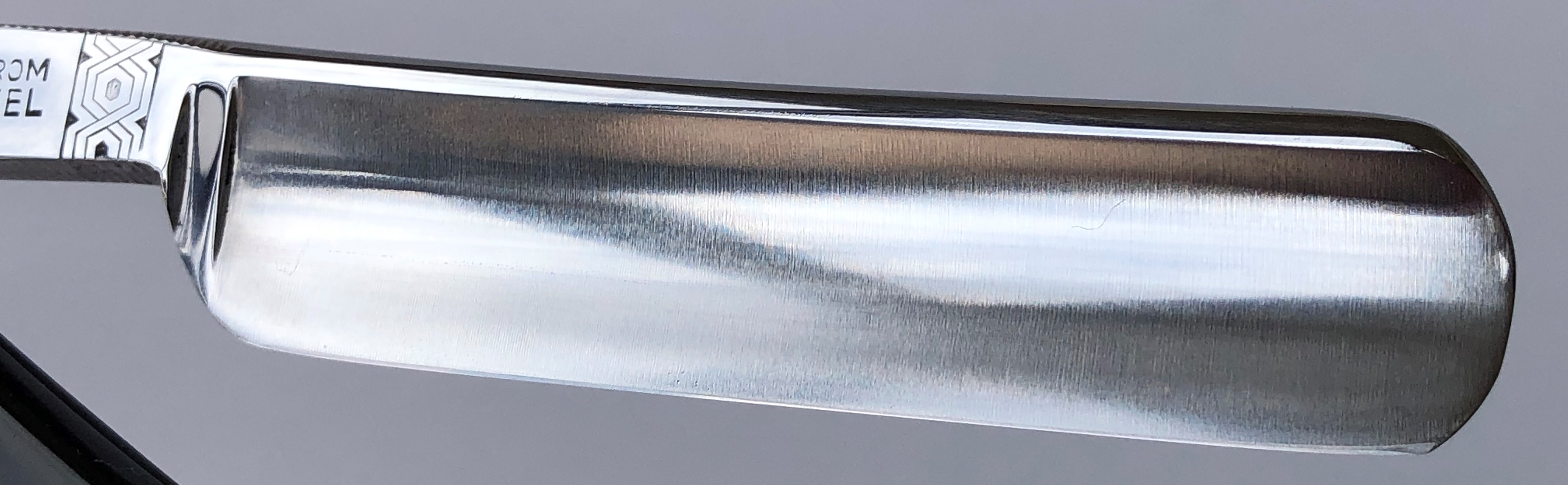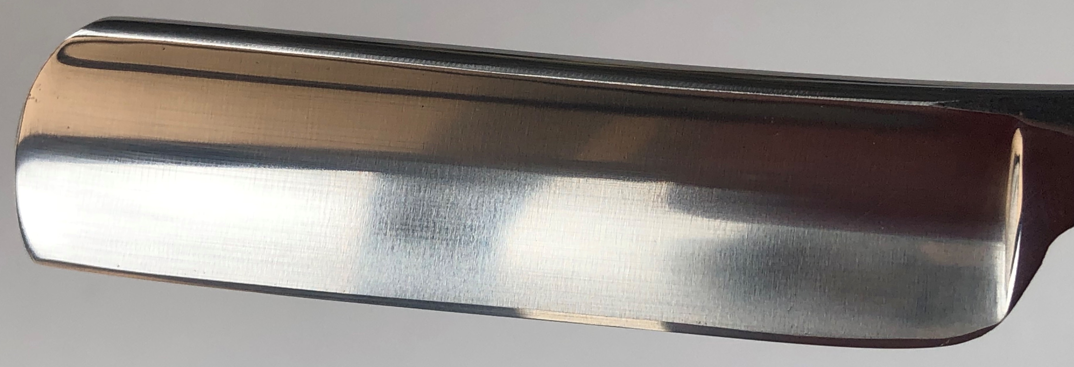 минимальных косметических работ.Комбинированная полировка:тело бритвы практически в "зеркало", а само полотно-продольная грубая шлифовка и полировка.Идеальная геометрия полотна:кромочка равномерна по всей длине.