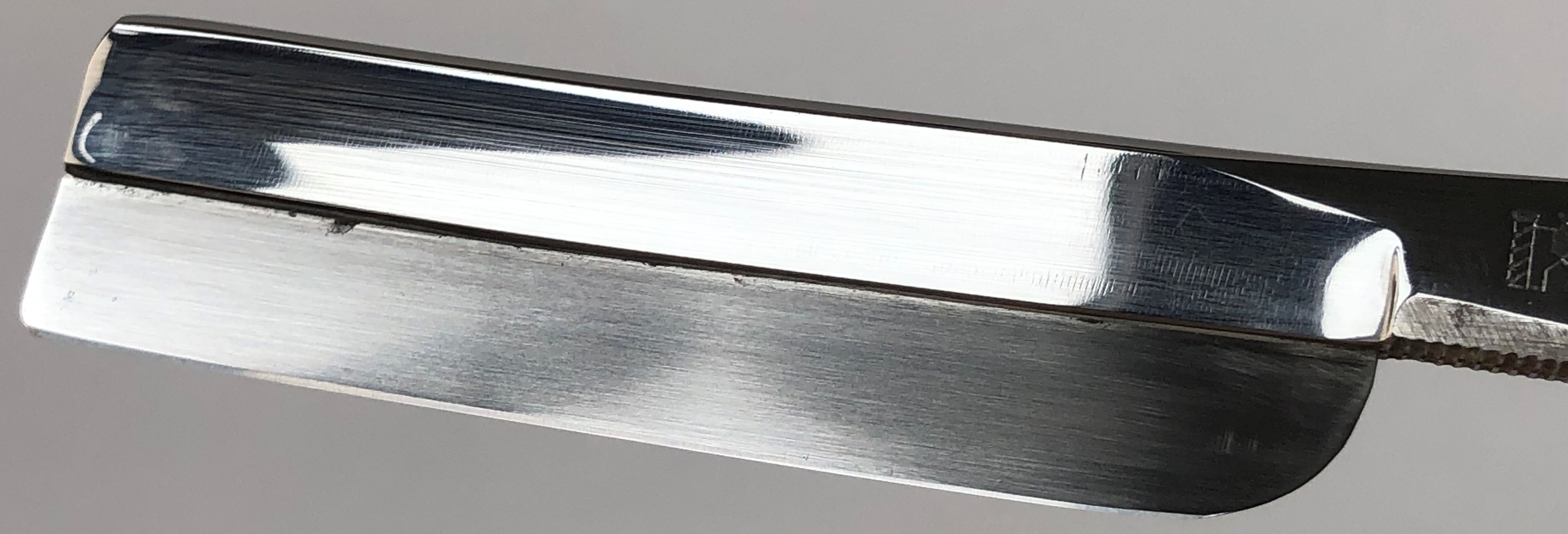 Бритва не имеет следов пользования, но клинок нуждался в небольших, косметических работах.