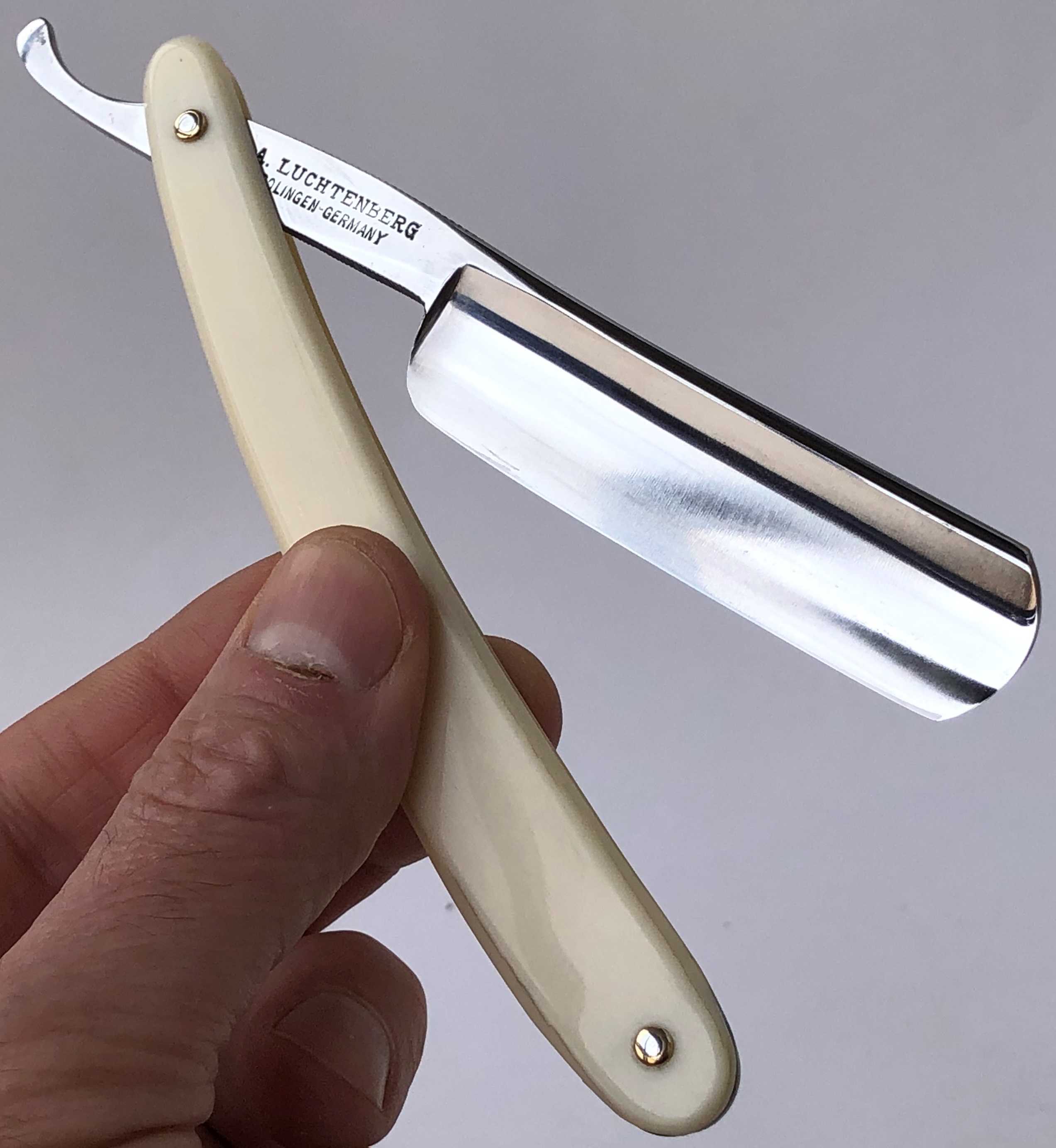 Бритву заточил и с удовольствием лично протестировал, так как всегда приятно испробовать что то действительно редкое.Бритье порадовало:чистое, мягкое, без раздражения, с характерным "шуршанием" сбриваемой щетины.Думал, с чем можно сравнить данную вещь и наверное соглашусь сам с собой, что напоминает нечто среднее между немцами и англичанами начала прошлого века.Очень качественная углеродка.