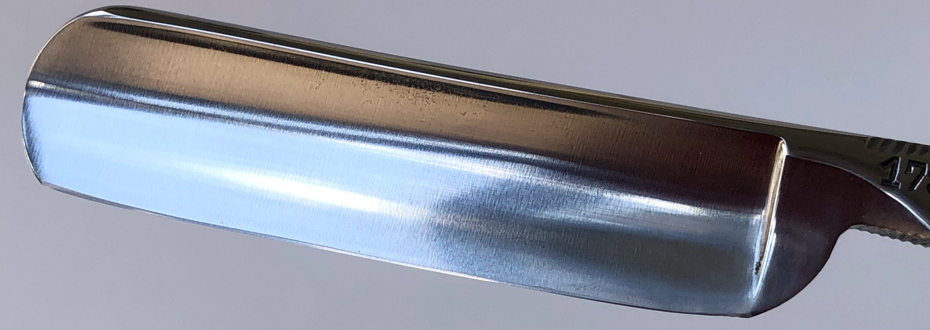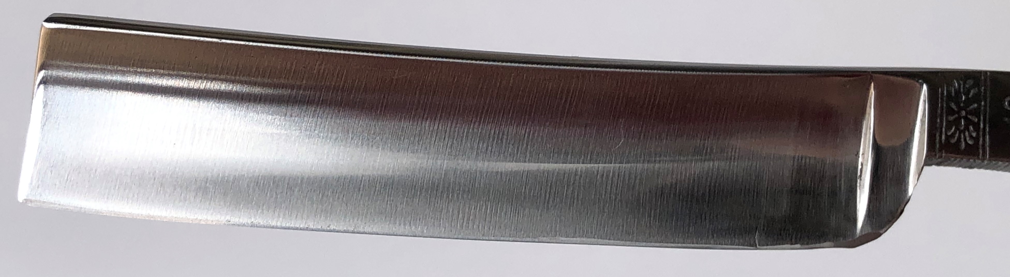 Бритва не разбиралась и не ремонтировалась.Оригинальная шлифовка.Немного полирнул для придания былого блеска и удаления микро-царапин .Сталь и кромочка чистые от видимых дефектов.Сама кромка равномерна по всей длине. Бритва заточена и готова к бритью.
