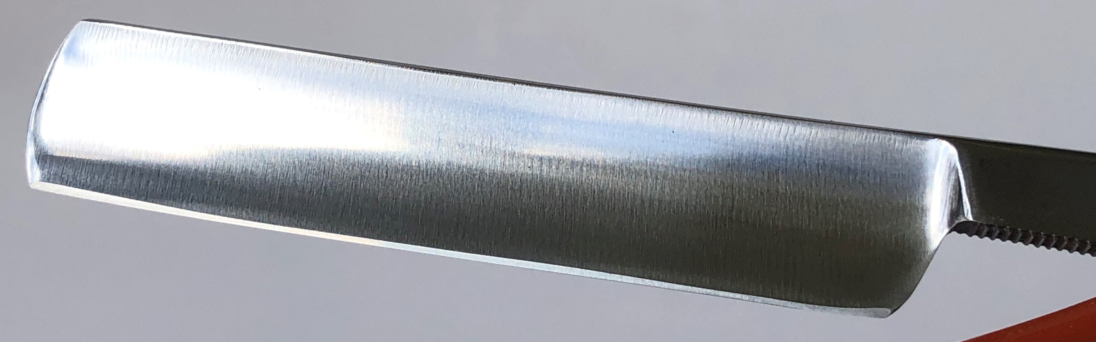 модель тоже можно причислить к парикмахерским, исходя из достаточно толстого обушка.Такая геометрия бритвы предполагает бритье практически плашмя, не вставляя специально угол атаки.