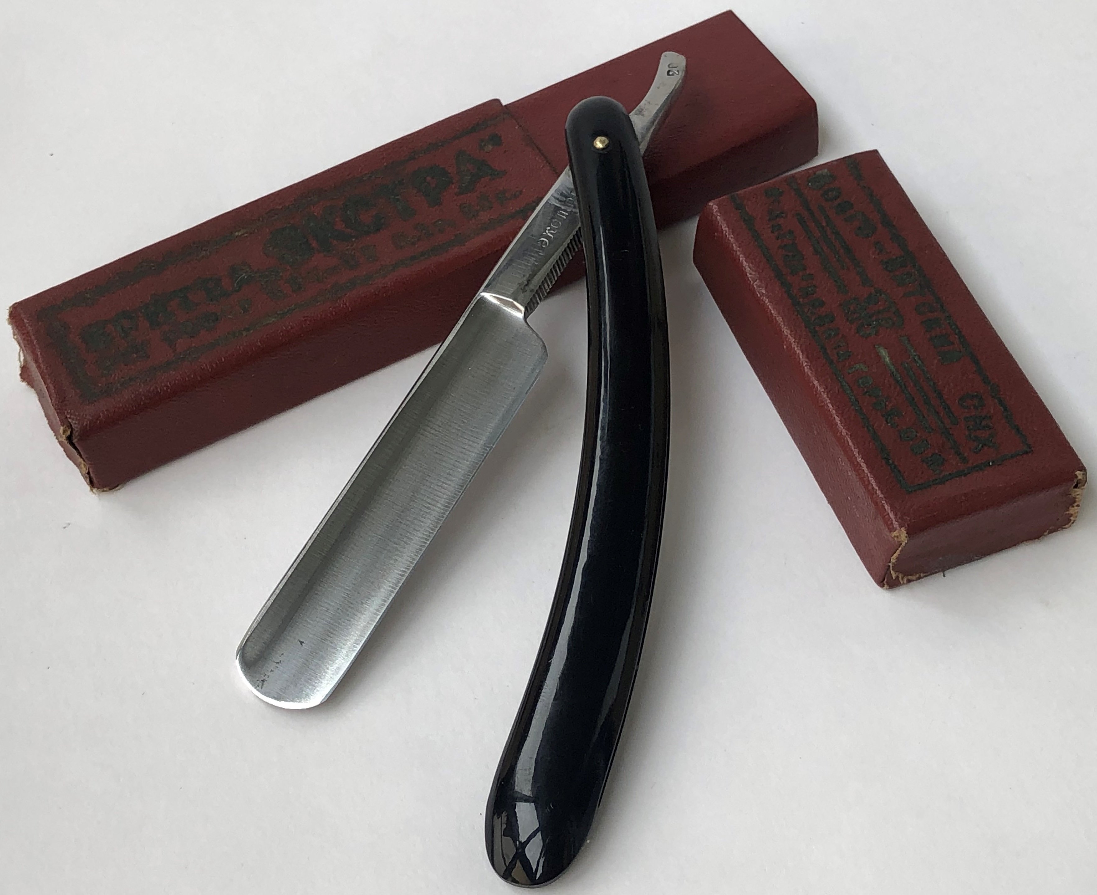 Бритва не была в пользовании. Остатки масла с консервации были удалены.Ничего не разбиралось и не ремонтировалось.Умеренно полирнул клинок, чтобы придать былой блеск и все.