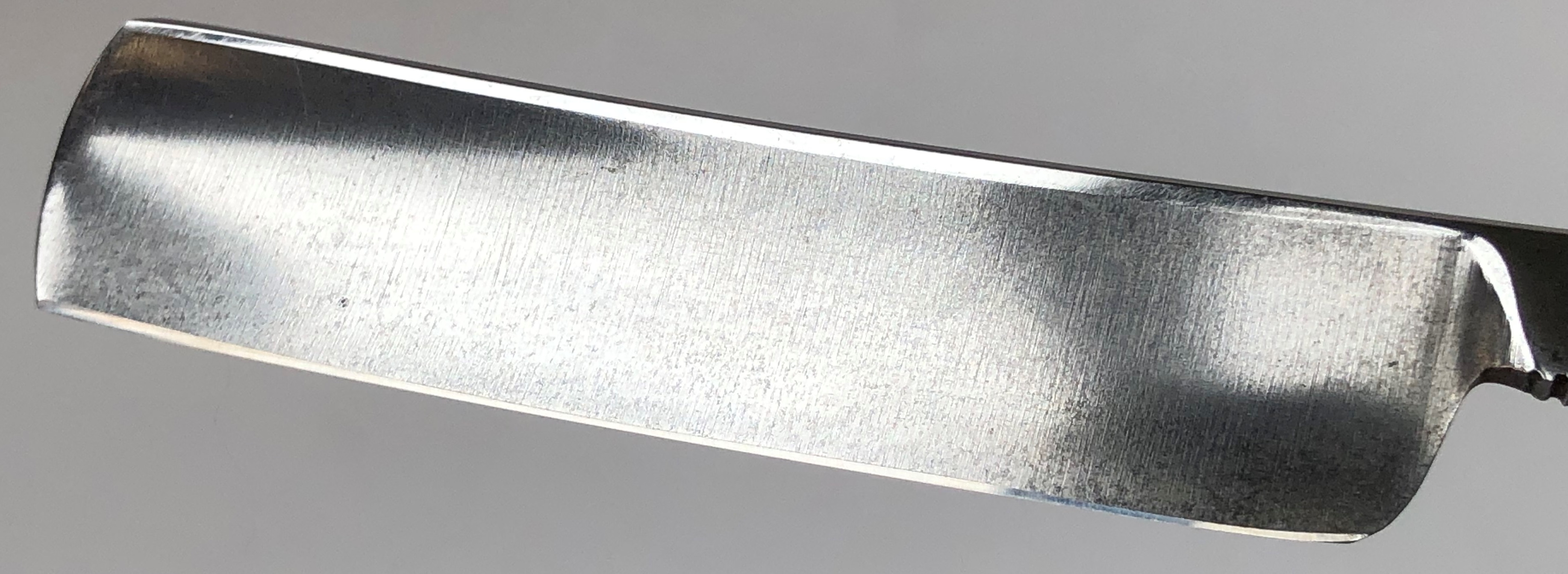 Бритва не разбиралась и не ремонтировалась. Оттер от остатков смазки с хранения. Есть несколько "следов времени", но трогать ничего не стал, чтобы сохранить полную оригинальность.Имеются следы от электро-химической заводской заточки.Идеальная геометрия полотна:кромочка равномерна по всей длине.Заводская заточка была переточена и доведена до комфортного бритья.