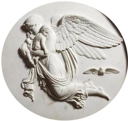 Богиня Ночь и ее дети. — Опрокинутый факел бога смерти. — Сизиф побеждает бога смерти. — Самопожертвование Алкесты. — Геракл — победитель смерти. — Античные похоронные церемонии. — Гробницы и надгробные памятники античности. — Отправление теней умерших в Аид. Богиня Ночь и ее дети Богиня Ночь, мать богов-близнецов Сна и Смерти, обитает в стране, которую солнце никогда не освещает своими лучами. «Никогда в этой стране петух не возвещает о возвращении зари. Никогда собаки и гуси, охраняющие вход в дома, не нарушают своим криком тишины, царящей в торвальдсен, ночь, маки, античность Ночь и ее дети. Бертель Торвальдсен, барельеф, 1815 г. Музей Торвальдсена, Копенгаген. NB В волосах Ночи — маки, античный символ сна. Безмолвие природы увеличивается вместе с темнотой по мере ее приближения; вода в ручьях перестает журчать; ветер не шелестит больше листьями и ветками, и вскоре появляется пещера, обиталище печальной и мрачной богини Ночи. Античное искусство редко изображало Ночь, хотя на ларце Кипсела богиня Ночь представлена держащею в руках своих детей — Сон и Смерть. Датский скульптор Торвальдсен изобразил богиню Ночь летящей в пространстве с двумя детьми на руках; сова сопровождает Ночь. Самое совершенное изображение богини Ночи изваял, бесспорно, Микеланджело для гробницы Медичи. Бог Сон изображается всегда с жезлом в руке: посредством этого жезла он усыпляет. Сыновья бога Сна — обманчивые сновидения; главный из них, Морфей, представляется почти всегда на памятниках искусства в виде бородатого старца с цветком мака в руке.