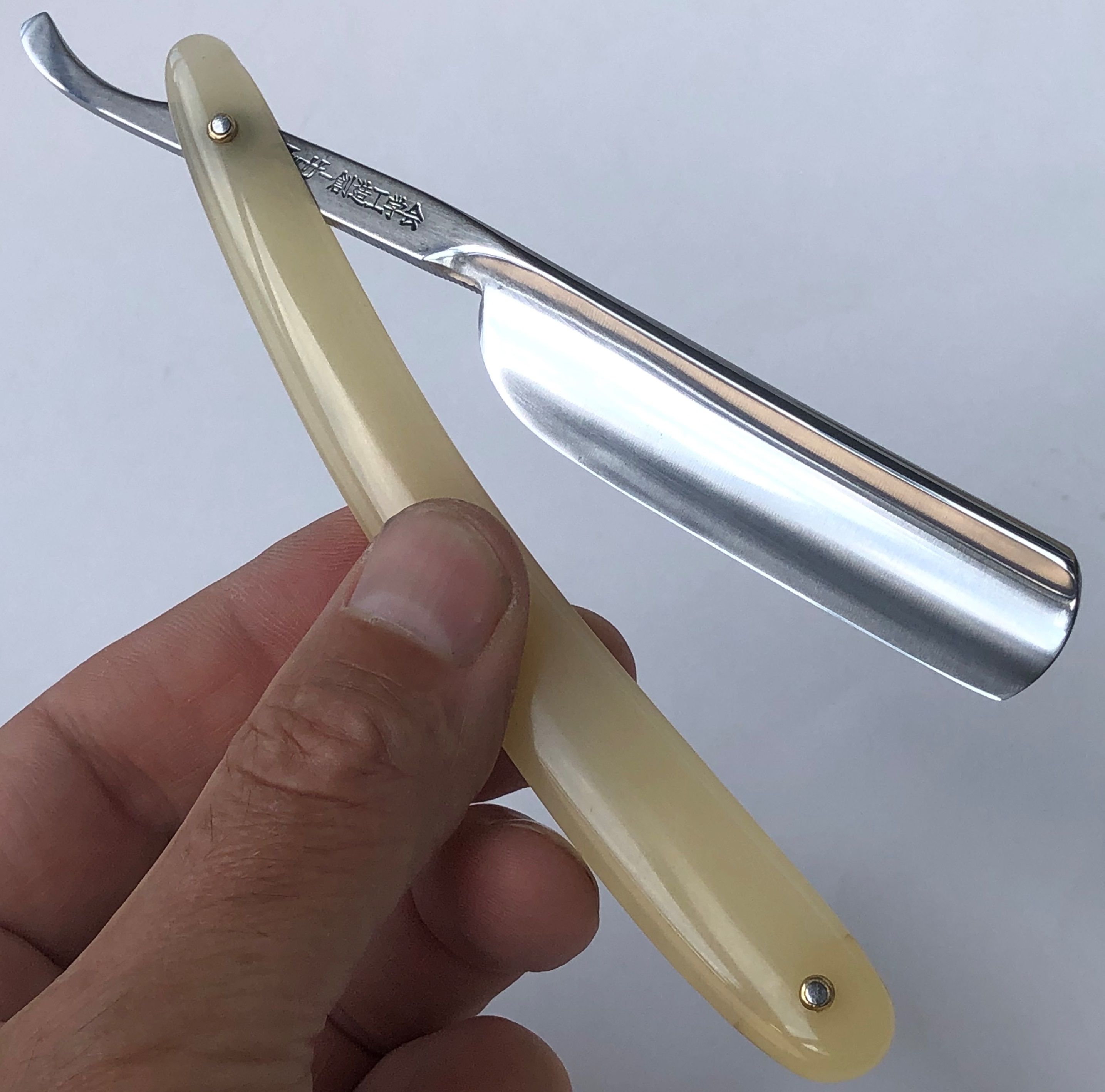 Бритва в прекрасном и непользованном состоянии. Не разбиралась и не ремонтировалась.Только прошелся вручную полиролью и все.Идеальная геометрия клинка:кромочка равномерна по всей длине.Сталь чистая, без видимых дефектов. Высококачественная и элегантная японка, с красивой оправой.Бритва среднего+ размера, способная порадовать не только опытного пользователя, но и новичка. Будет заточена и готова к бритью.