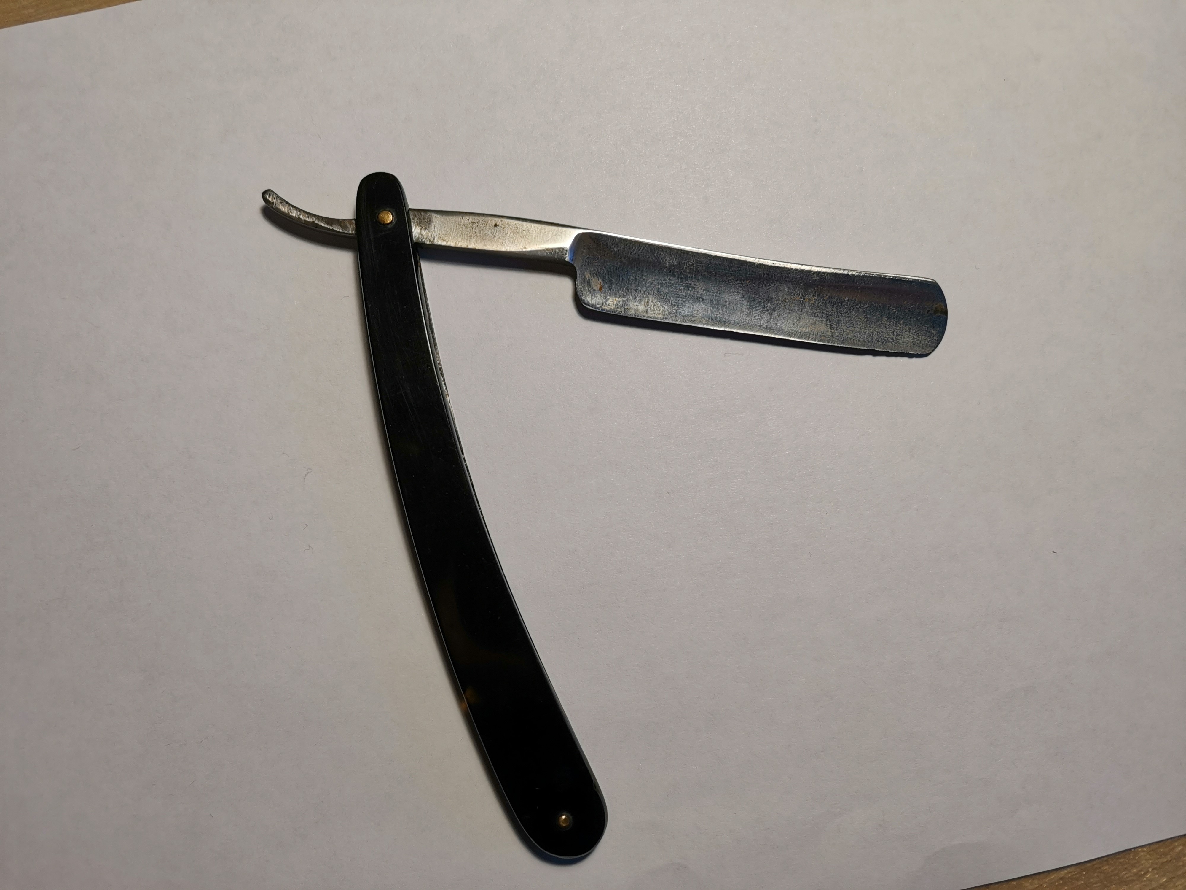 Бритва Росинструмент. г.Павлов.Интересно, ручку меняли, или всё родное? Хром с пина облез, вероятно подбивали. Лезвие к ручке подогнано правильно.