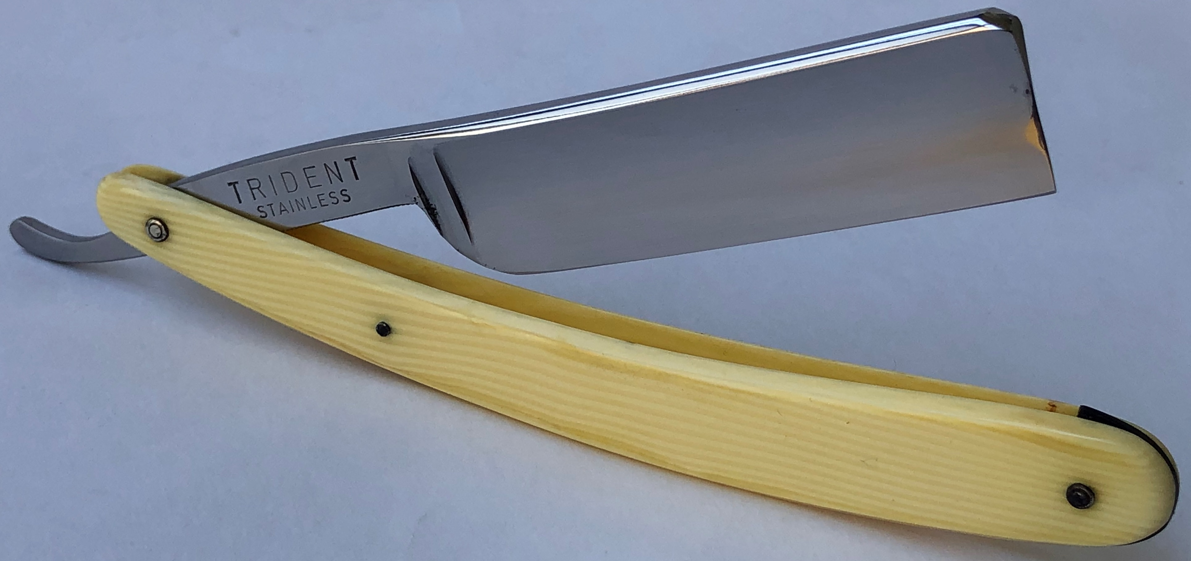 Клинок в прекрасном и малопользованном состоянии для своих лет. Бритва была разобрана, для приведения в порядок и снова собрана, с заменой пинов на двух-цветные пины, а также с добавлением внутренних шайб.