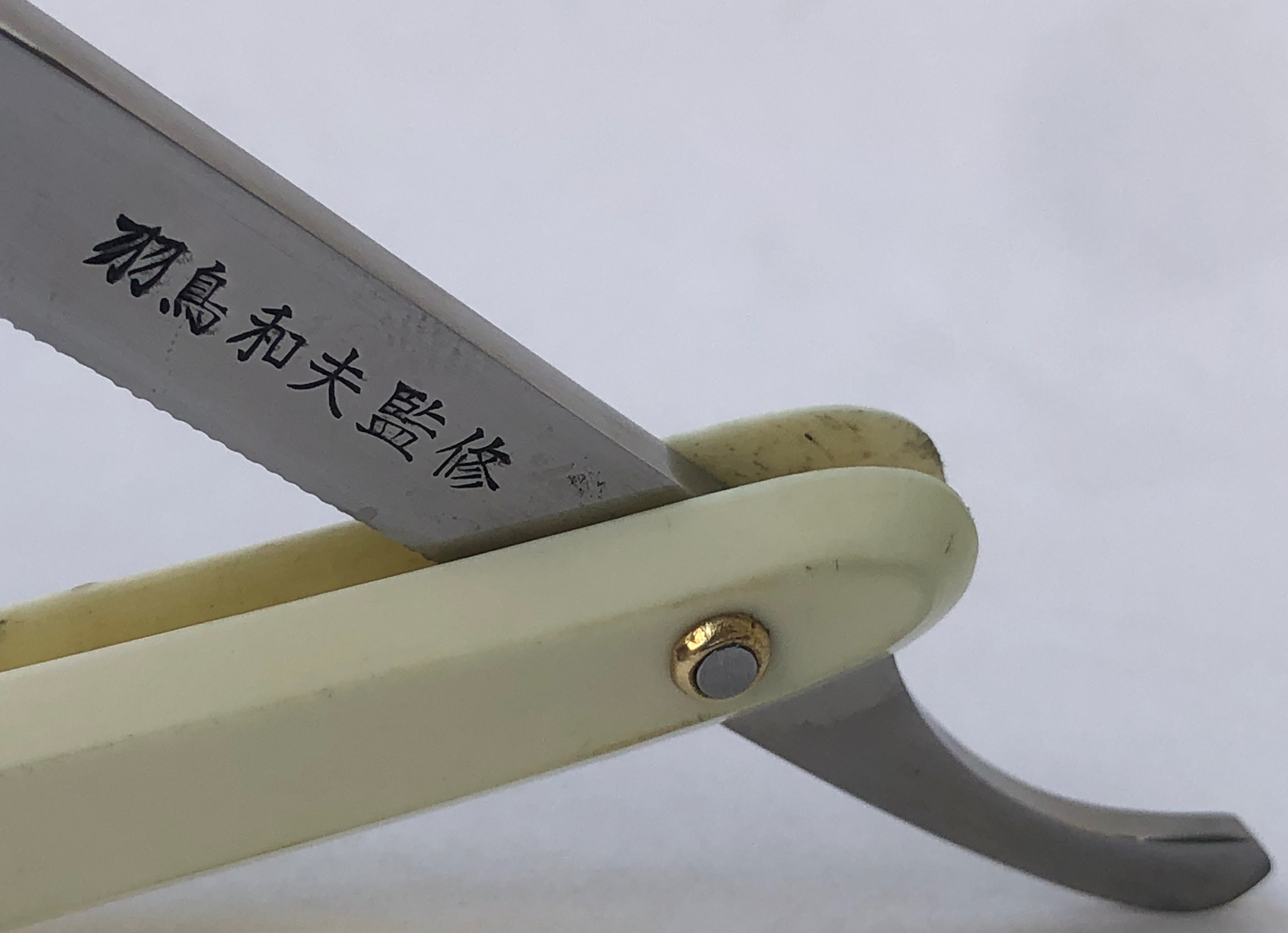 Представляет собой ординарную классическую японскую бритву, созданную в евро стиле.Бритва в очень хорошем состоянии.Была разобрана для проведения минимальных косметических работ, а также замены пинов на двух-цветные втулки и внутренние шайбы.Кромка равномерна по всей длине.Сталь и кромка чистые, без видимых дефектов.Мощная, оправа, в купе с толстым и достаточно крупным обушком придает бритве значительный вес, что дает возможность контролировать процесс бритья , не резаться часто и бриться, практически кладя бритву плашмя , не выставляя угол атаки. Высококачественная и относительно недорогая бритва. Не пропустите!