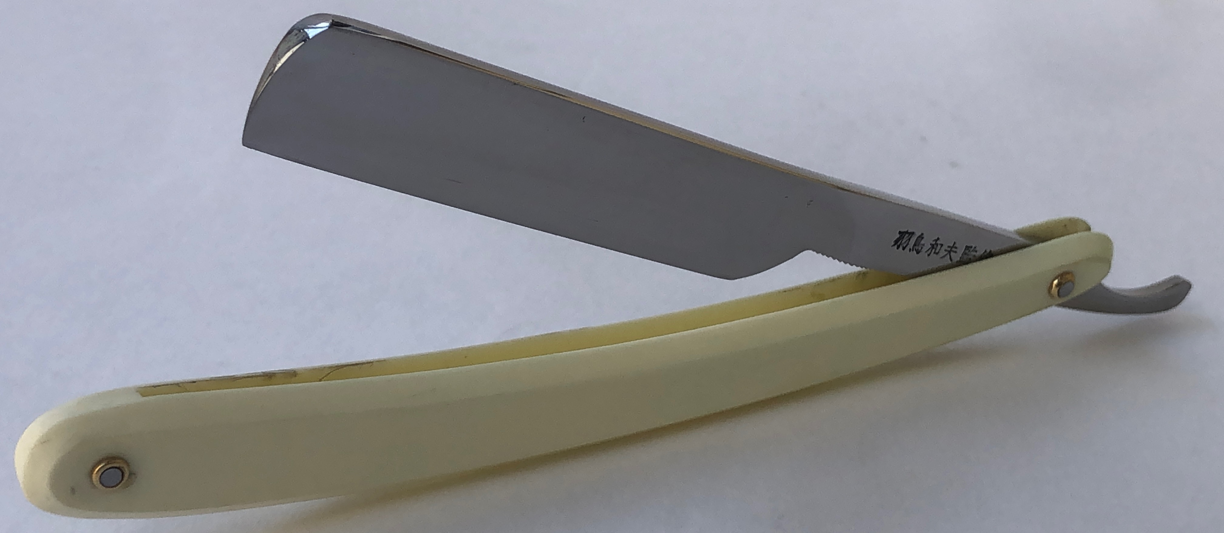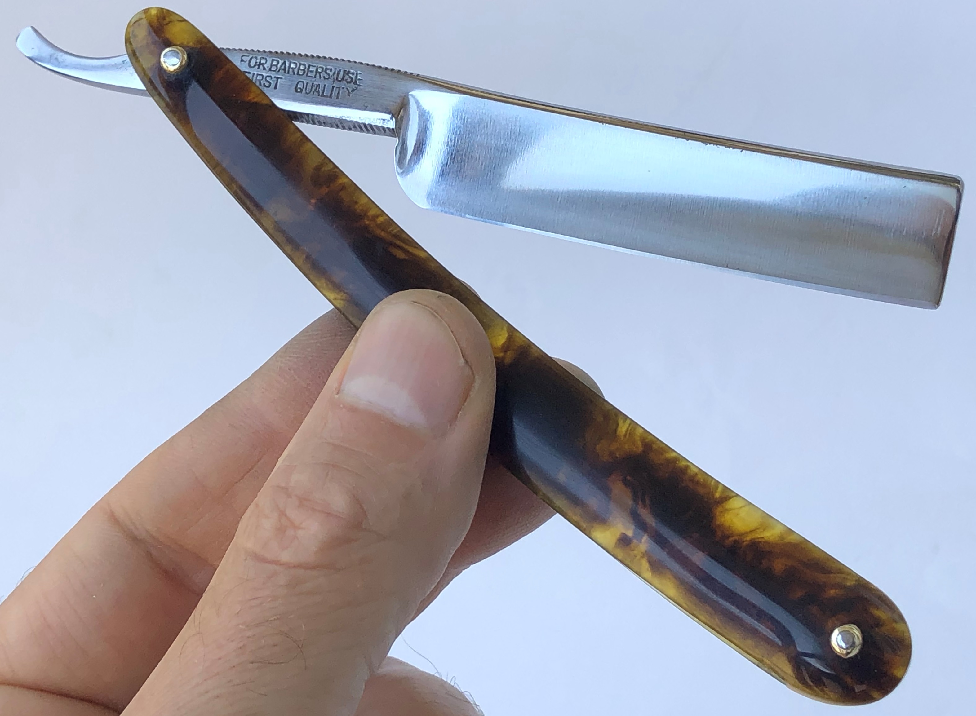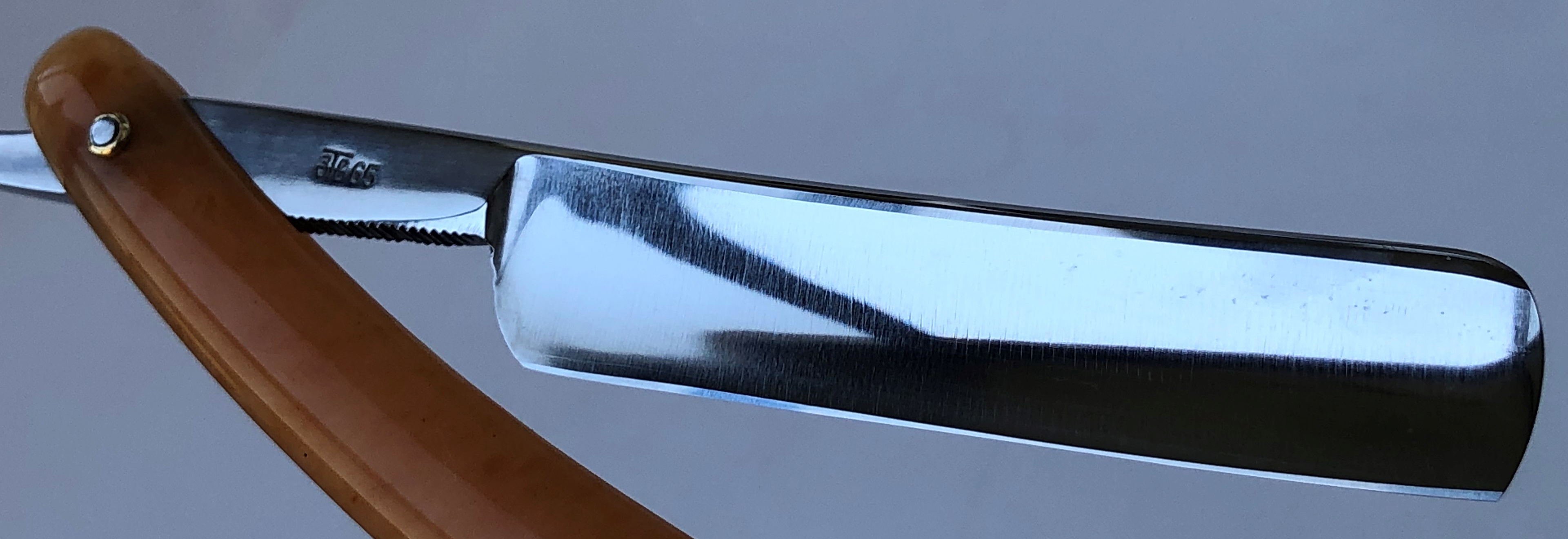 Ничего тут не делал. Бритва была разобрана, для удаления окисления в районе осевого пина, а также замены шайб на двух-цветные втулки.Очень неплохая и редкая вещь.Заточена и готова к бритью.