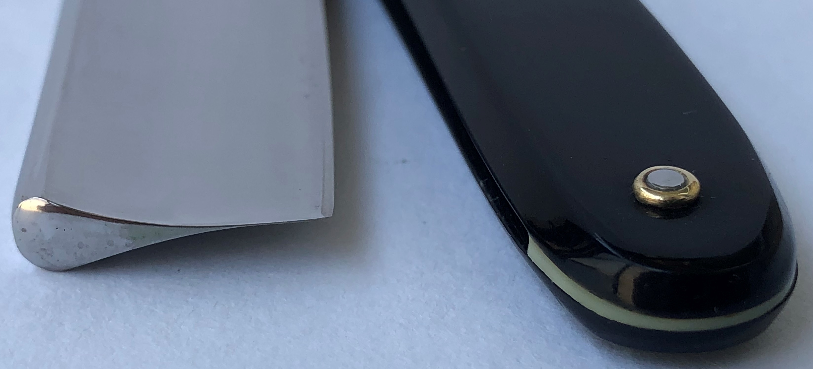 Клинок в прекрасном и малопользованном состоянии для своих лет. Бритва была разобрана, для приведения в порядок и снова собрана, с заменой пинов на двух-цветные пины, а также с добавлением внутренних шайб.