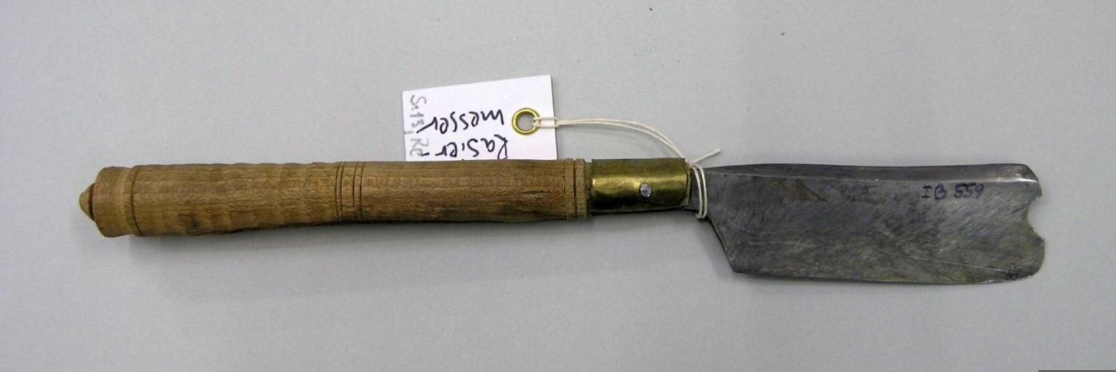 Из коллекции какого-то немецкого музея, Иран19 век: https://id.smb.museum/object/194283/rasiermesser похоже это было распространенным явленим в азии такие ручки приделывать к бритвам, заморачиваться с осевым пином и делать клинок подвижным гораздо сложнее. А вот еще одна, турецкая, тут навершие у ручки такой же формы, как и у халифских: https://id.smb.museum/object/190095/rasiermesser Осевой пин есть, но, что то не похоже, что бы клинок полностью укладывался в ручку, прорезь короткая.